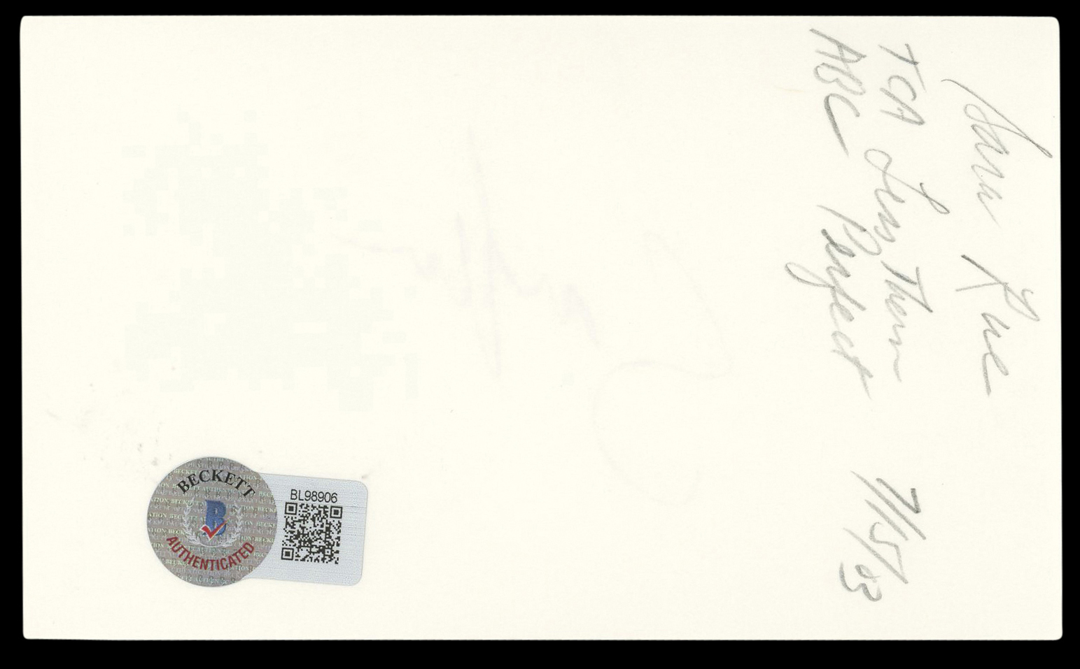 This Autographed 3x5 Index Card has been Personally Signed by Sara Rue of Popular. This item is 100% Authentic to include a hologram by Beckett Authentication Services. This item will come with an affixed Beckett Authentication Services (BAS) authentication sticker, which includes a scannable QR code to verify authenticity. Please note that Beckett no longer provides serial-numbered COA cards, and the attached BAS sticker will serve as the complete authentication for this item. The authenticity can be verified on Beckett Authentication Services website.