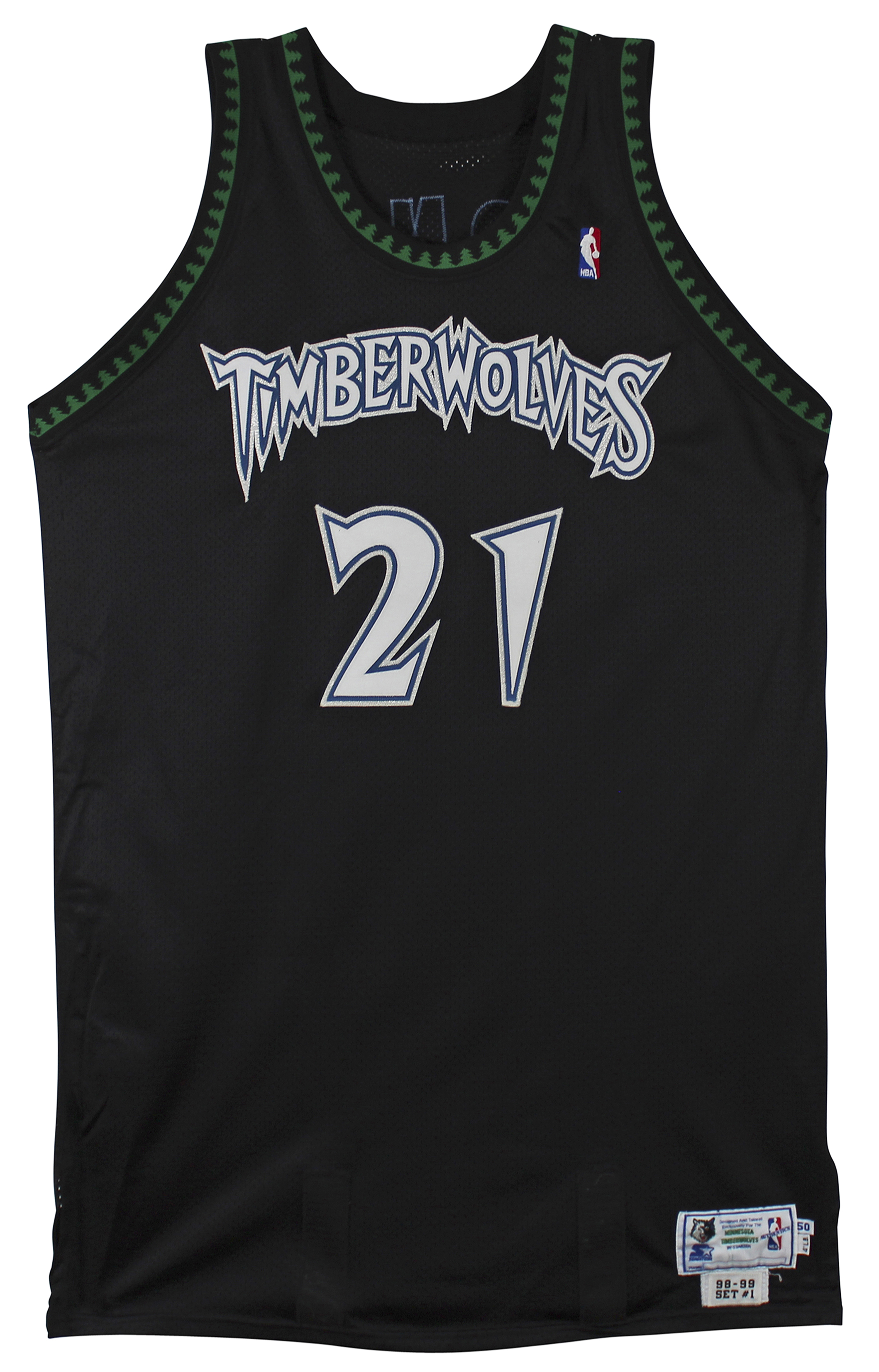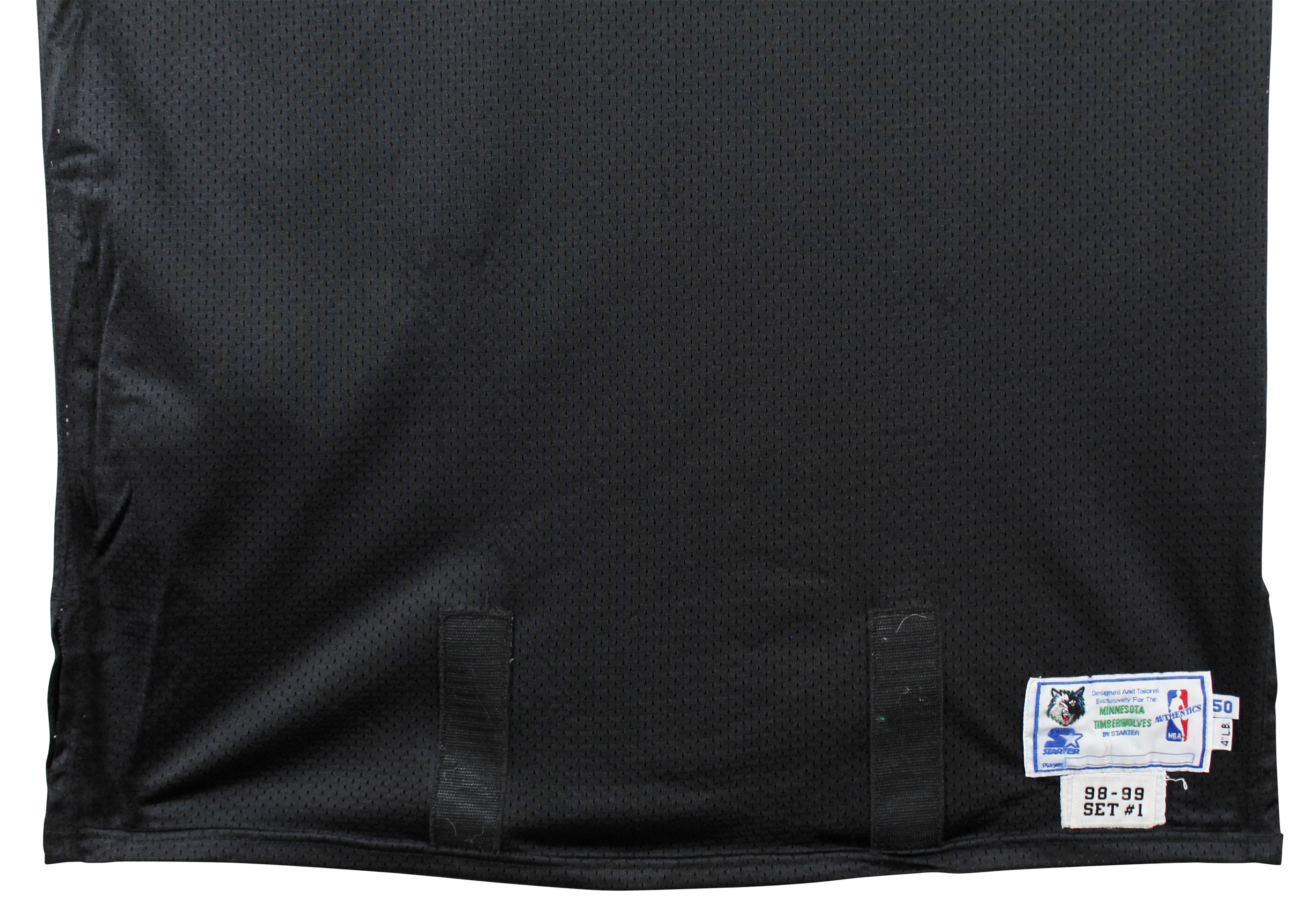 This Autographed 1998-99 Game Worn Black Starter Size 50 +4 Length Jersey has been Personally Signed by Kevin Garnett of the Minnesota Timberwolves. The jersey shows quality overall use and was originally sourced directly from the Minnesota Timberwolves and is accompanied by a Letter of Authenticity from the team. This has also been authenticated by Sports Investors Authentication, and will come with a matching LOA, along with a LOA from the Minnesota Timberwolves. This item is 100% Authentic to include a Certificate of Authenticity (COA) / hologram by Beckett Authentication Services. The authenticity can be verified on Beckett Authentication Services website.