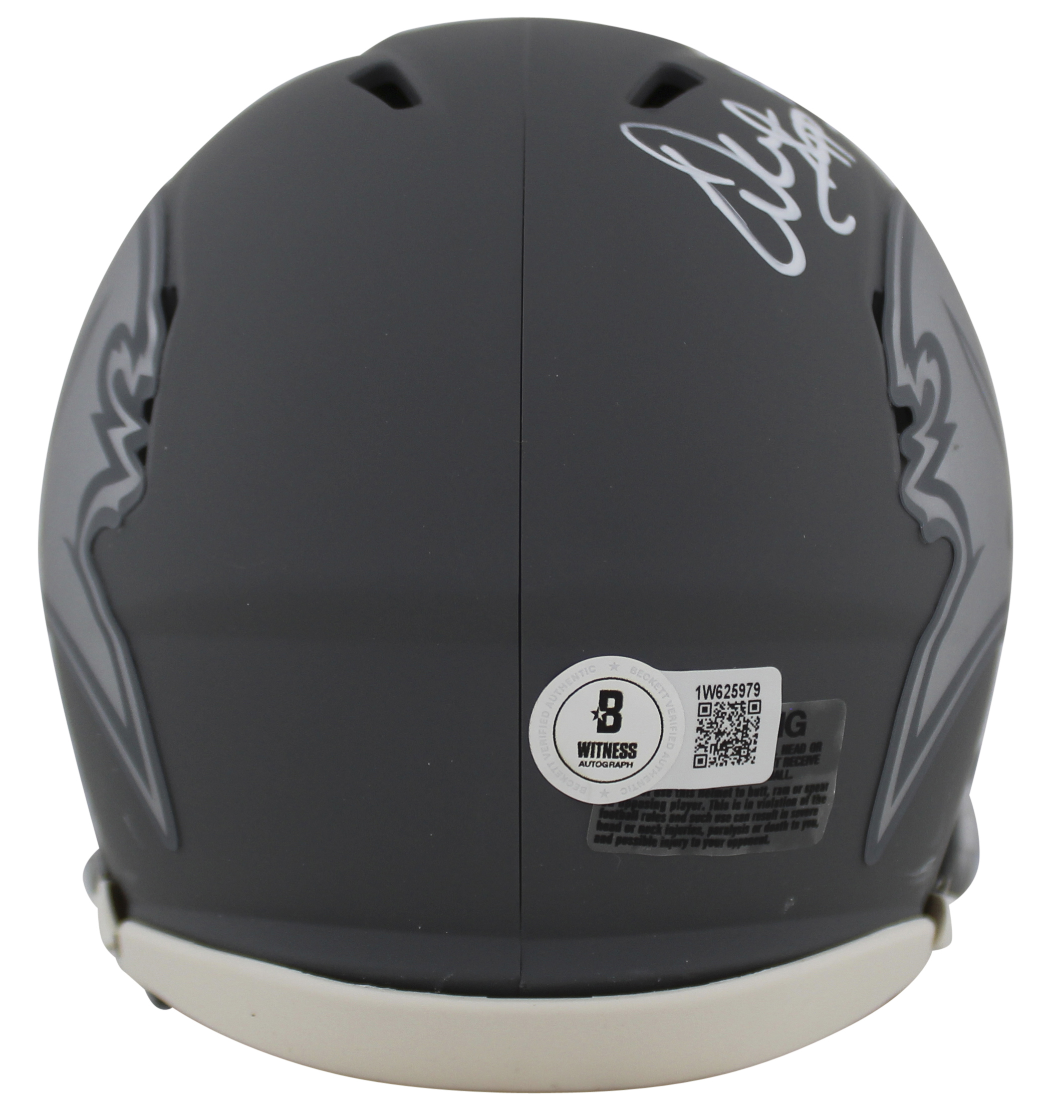 This Autographed Alternate Slate Speed Mini Helmet with the inscription of "HOF 13" has been Personally Signed by Warren Sapp of the Tampa Bay Buccaneers. This item is 100% Authentic to include a Certificate of Authenticity (COA) / hologram by Beckett Authentication Services. This is a BAS Witnessed Protection Program item which means a Beckett Authentication Service representative was present when this item was being signed. We conducted an autograph signing with Warren Sapp where multiples of the same item were signed. While the photographs are representative of this item, the size, placement and strength of the signature may vary. Each item is hand signed, therefore, each autograph is unique. This item can be verified through BAS Witnessed.