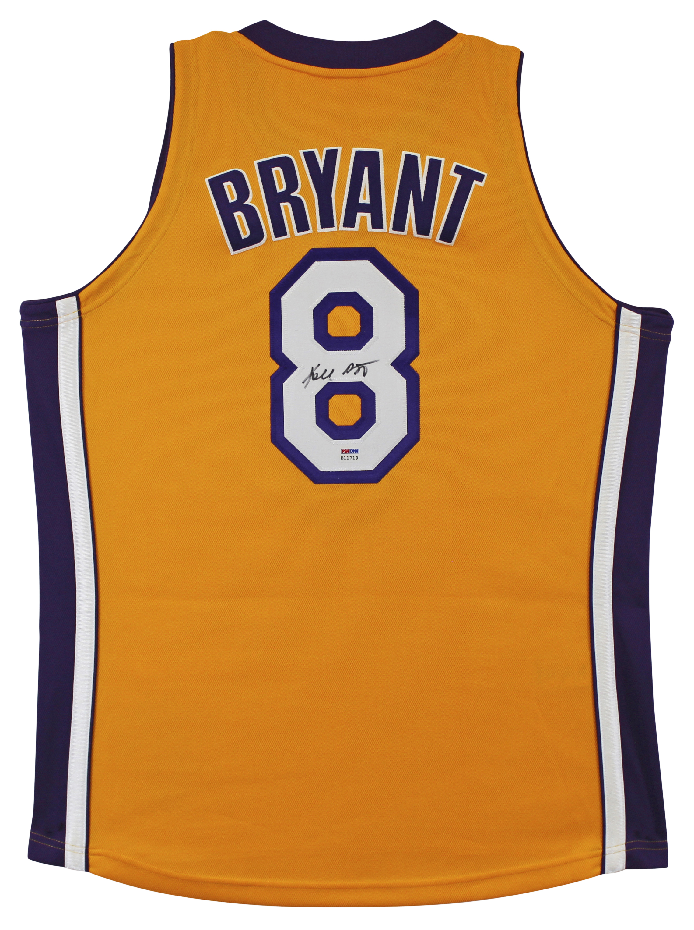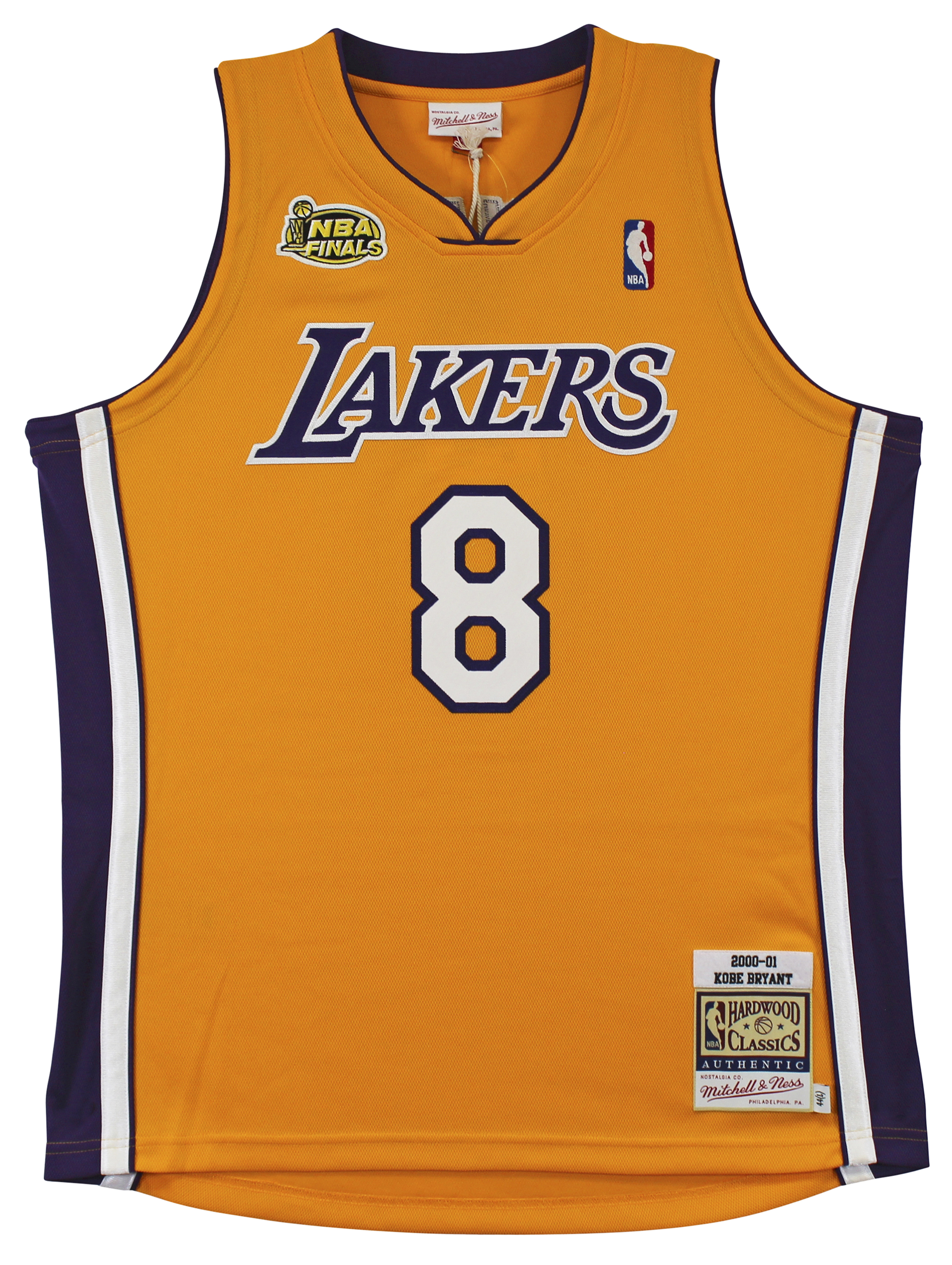 This Autographed Yellow 2000-01 Mitchell & Ness Hardwood Classics Authentic Jersey has been Personally Signed by Kobe Bryant of the Los Angeles Lakers. This item is 100% Authentic and comes with a PSA/DNA Certification Card and a matching numbered Hologram. The authenticity can be verified on Professional Sports Authenticator website. This is a Large sized Jersey.