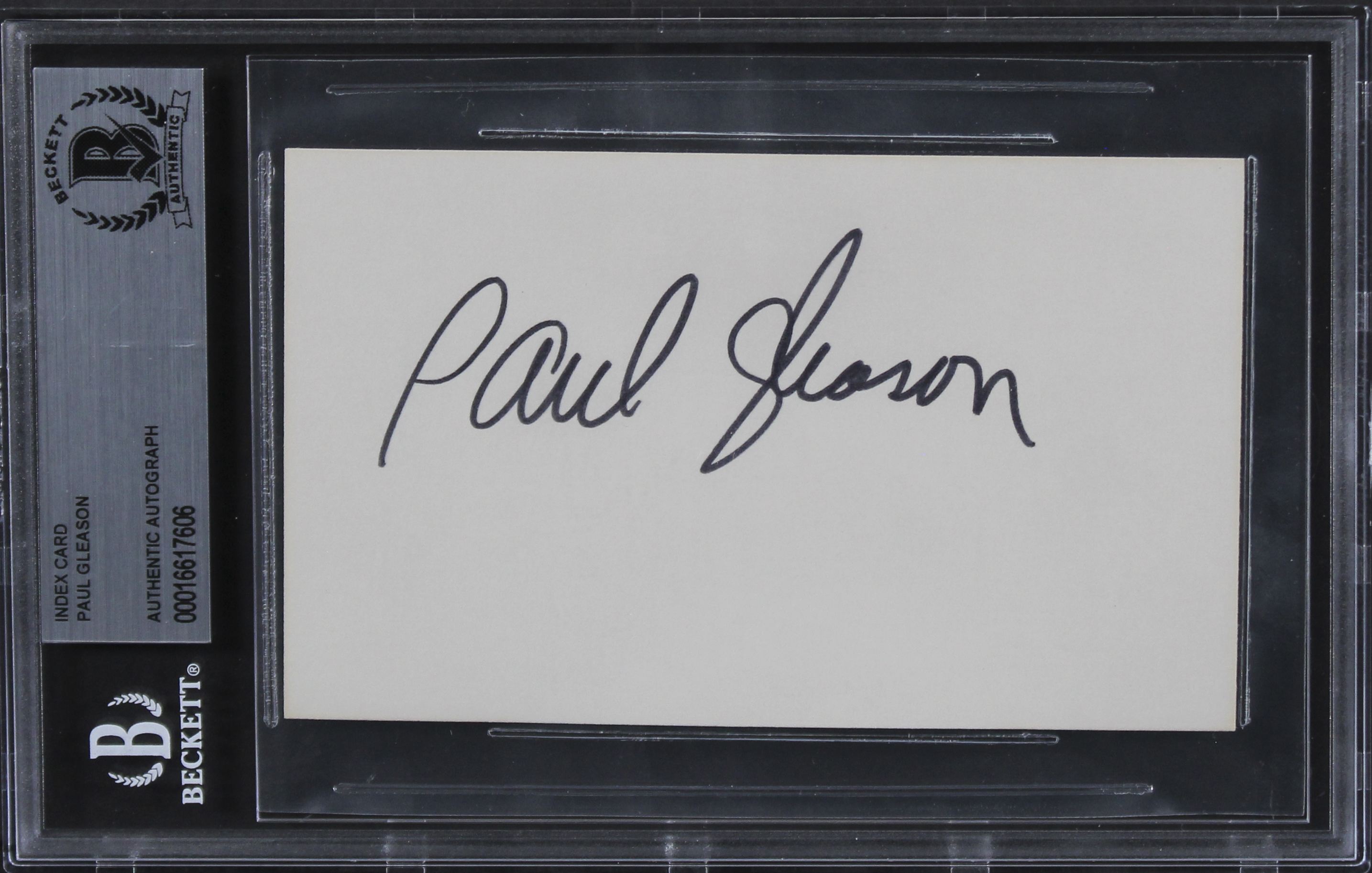This Autographed 3x5 Index Card has been Personally Signed by Paul Gleason of The Breakfast Club. This item is 100% Authentic, it comes slabbed and authenticated by Beckett Authentication Services. We have multiples of this same item. While the photographs are representative of this item, the size, placement and strength of the signature may vary. Each item is hand signed, therefore, each autograph is unique.