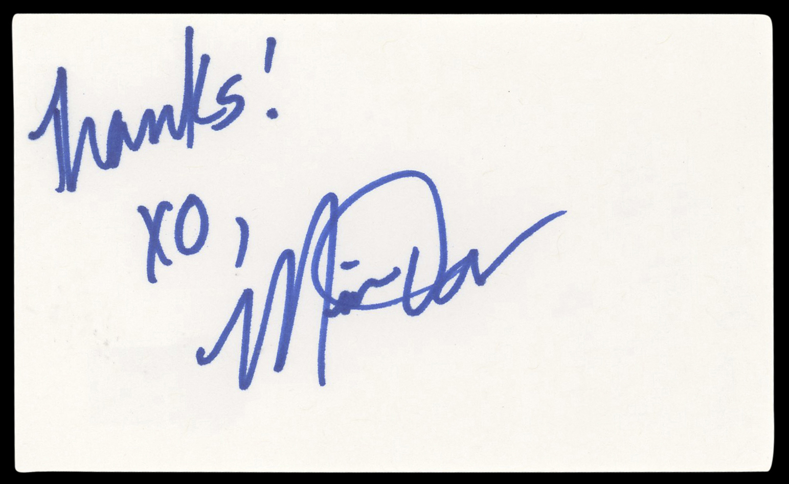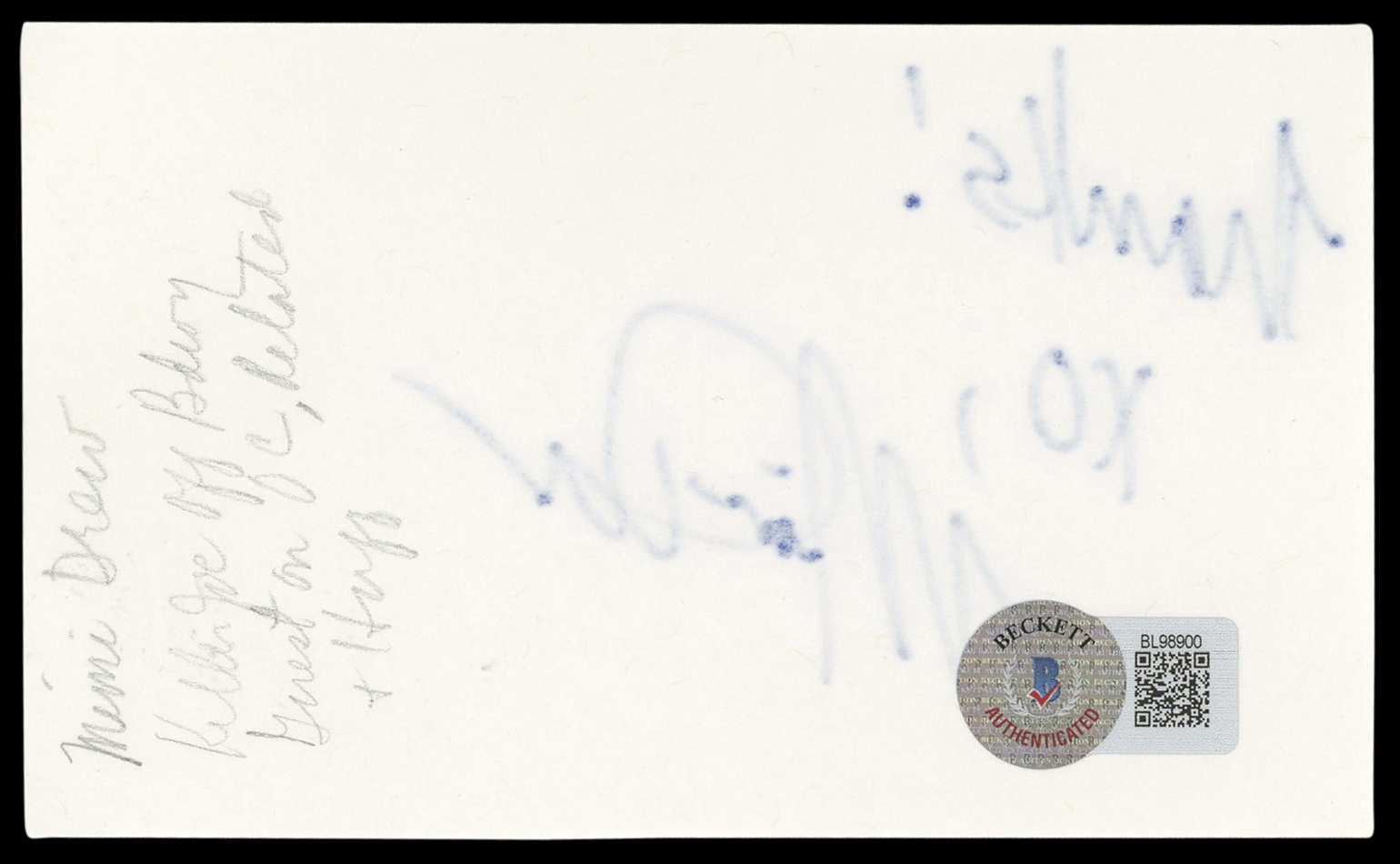 This Autographed 3x5 Index Card with the inscription of "Thanks! XO" has been Personally Signed by Mimi Drew. This item is 100% Authentic to include a hologram by Beckett Authentication Services. This item will come with an affixed Beckett Authentication Services (BAS) authentication sticker, which includes a scannable QR code to verify authenticity. Please note that Beckett no longer provides serial-numbered COA cards, and the attached BAS sticker will serve as the complete authentication for this item. The authenticity can be verified on Beckett Authentication Services website.