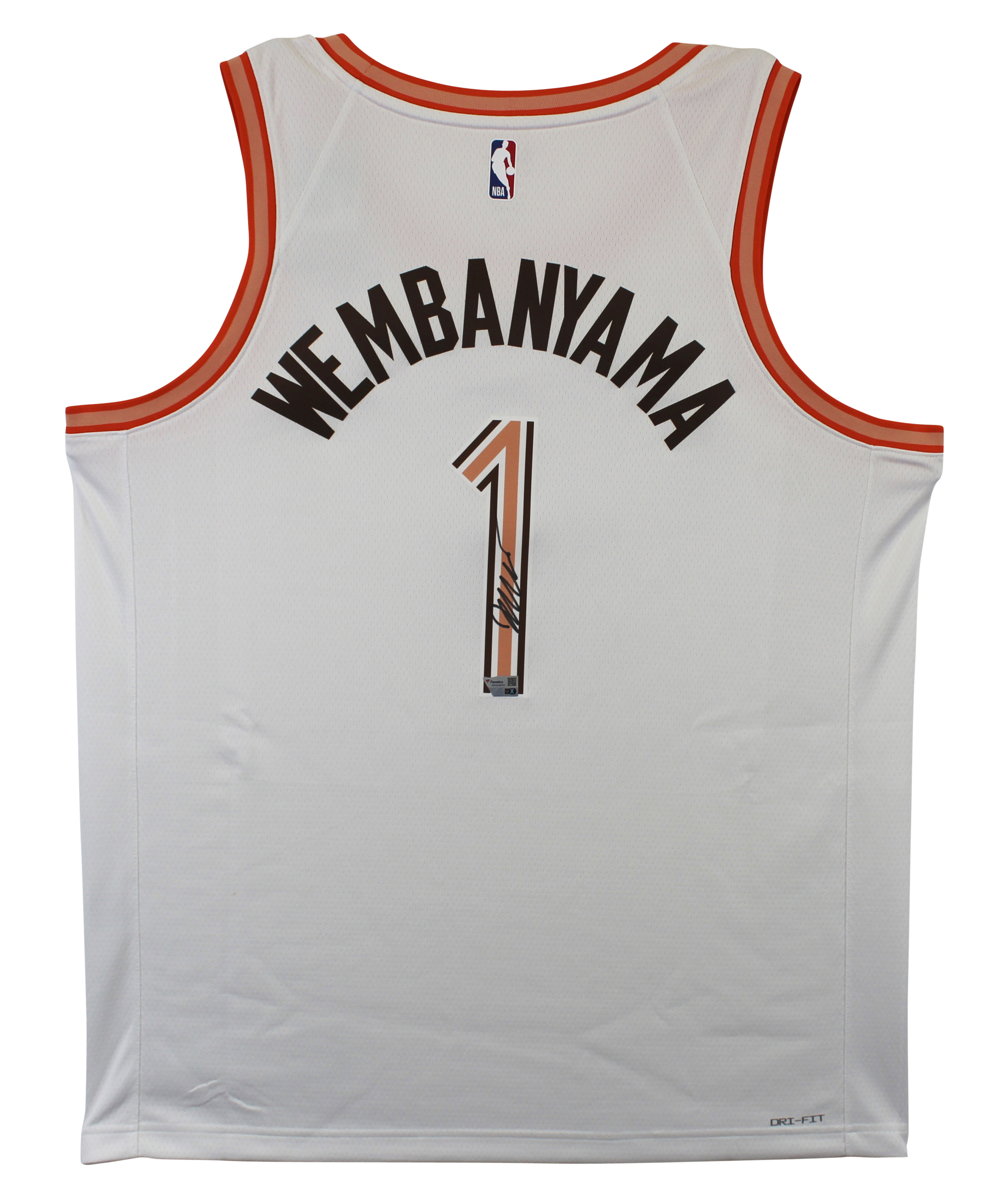 This Autographed White Nike City Edition Jersey has been Personally Signed by Victor Wembanyama of the San Antonio Spurs. This item is 100% Authentic to includes a numbered hologram by Fanatics. We have multiples of this same item. While the photographs are representative of this item, the size, placement and strength of the signature may vary. Each item is hand signed, therefore, each autograph is unique. Multiple sizes available. Reach out for availability.