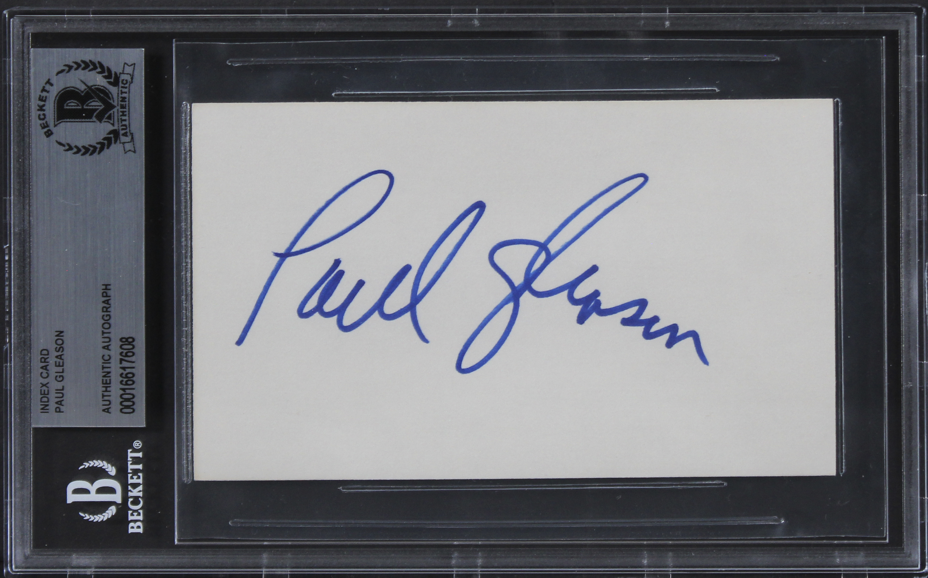 This Autographed 3x5 Index Card has been Personally Signed by Paul Gleason of The Breakfast Club. This item is 100% Authentic, it comes slabbed and authenticated by Beckett Authentication Services. The authenticity can be verified on Beckett Authentication Services website.