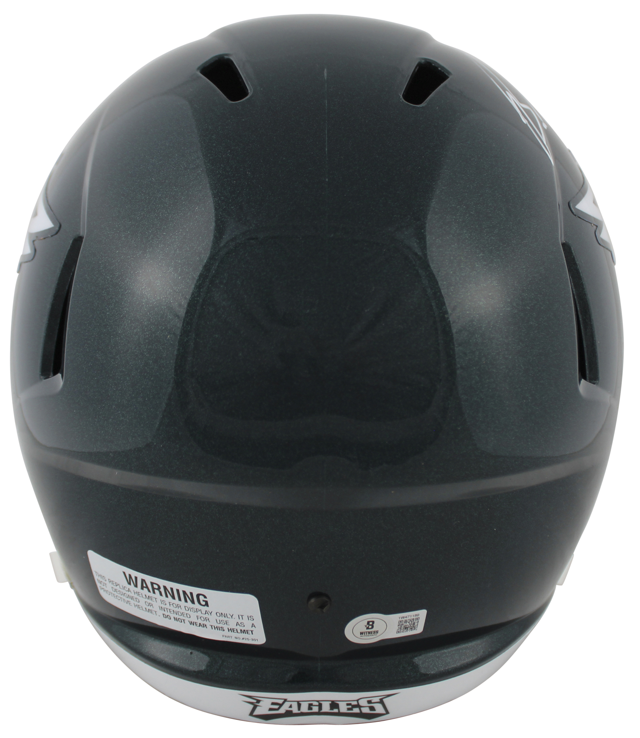 This Autographed Riddell Full Size Speed Rep Helmet has been Personally Signed by Brandon Graham of the Philadelphia Eagles. This item is 100% Authentic to include a hologram by Beckett Authentication Services. This item will come with an affixed Beckett Authentication Services (BAS) authentication sticker, which includes a scannable QR code to verify authenticity. Please note that Beckett no longer provides serial-numbered COA cards, and the attached BAS sticker will serve as the complete authentication for this item. This is a BAS Witnessed Protection Program item which means a Beckett Authentication Service representative was present when this item was being signed. We conducted an autograph signing with Brandon Graham where multiples of the same item were signed. While the photographs are representative of this item, the size, placement and strength of the signature may vary. Each item is hand signed, therefore, each autograph is unique. This item can be verified through BAS Witnessed.