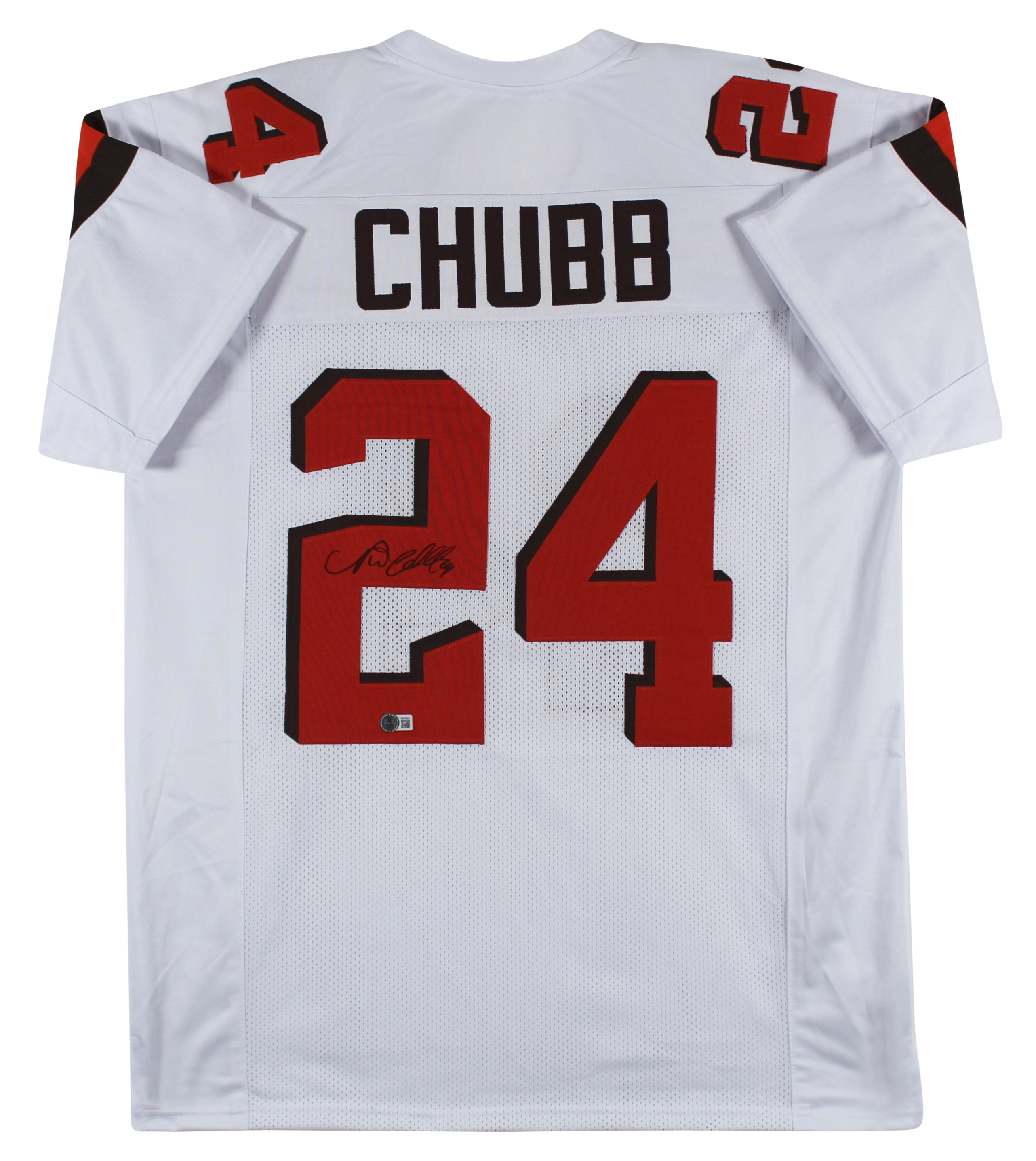 Nick Chubb Authentic Signed White Pro Style Jersey Autographed BAS Witnessed 2