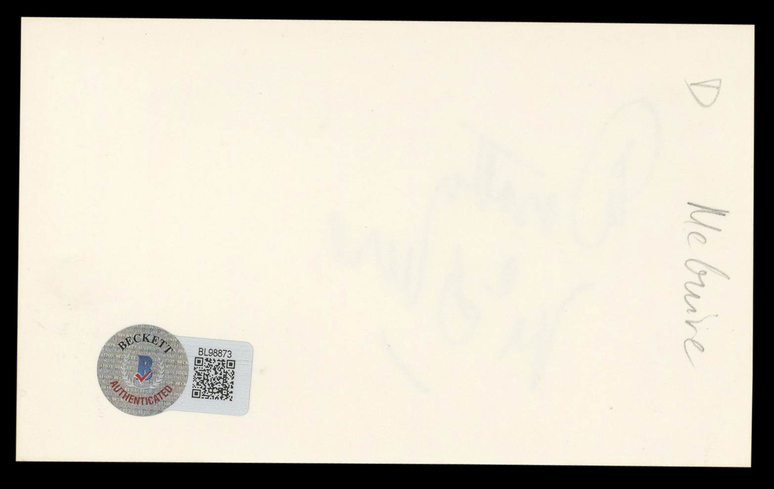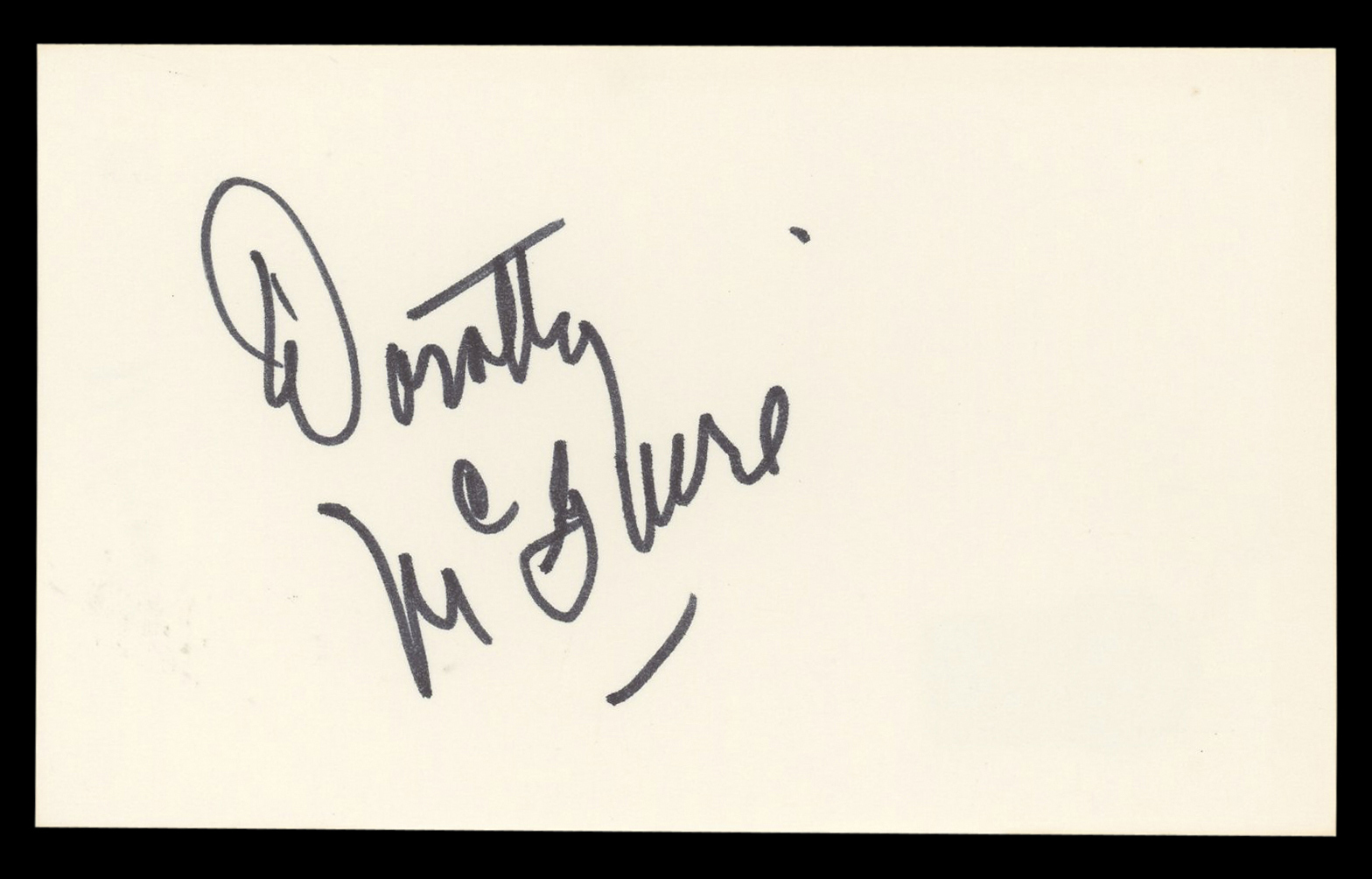 This Autographed 3x5 Index Card has been Personally Signed by Dorothy McGuire of Gentleman's Agreement. This item is 100% Authentic to include a hologram by Beckett Authentication Services. This item will come with an affixed Beckett Authentication Services (BAS) authentication sticker, which includes a scannable QR code to verify authenticity. Please note that Beckett no longer provides serial-numbered COA cards, and the attached BAS sticker will serve as the complete authentication for this item. The authenticity can be verified on Beckett Authentication Services website.