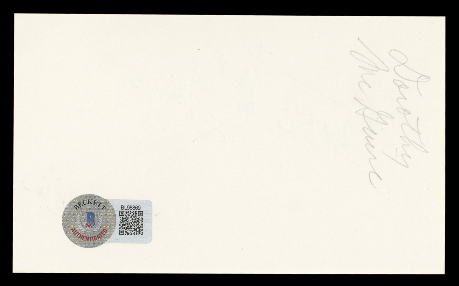This Autographed 3x5 Index Card has been Personally Signed by Dorothy McGuire of Gentleman's Agreement. This item is 100% Authentic to include a hologram by Beckett Authentication Services. This item will come with an affixed Beckett Authentication Services (BAS) authentication sticker, which includes a scannable QR code to verify authenticity. Please note that Beckett no longer provides serial-numbered COA cards, and the attached BAS sticker will serve as the complete authentication for this item. The authenticity can be verified on Beckett Authentication Services website.