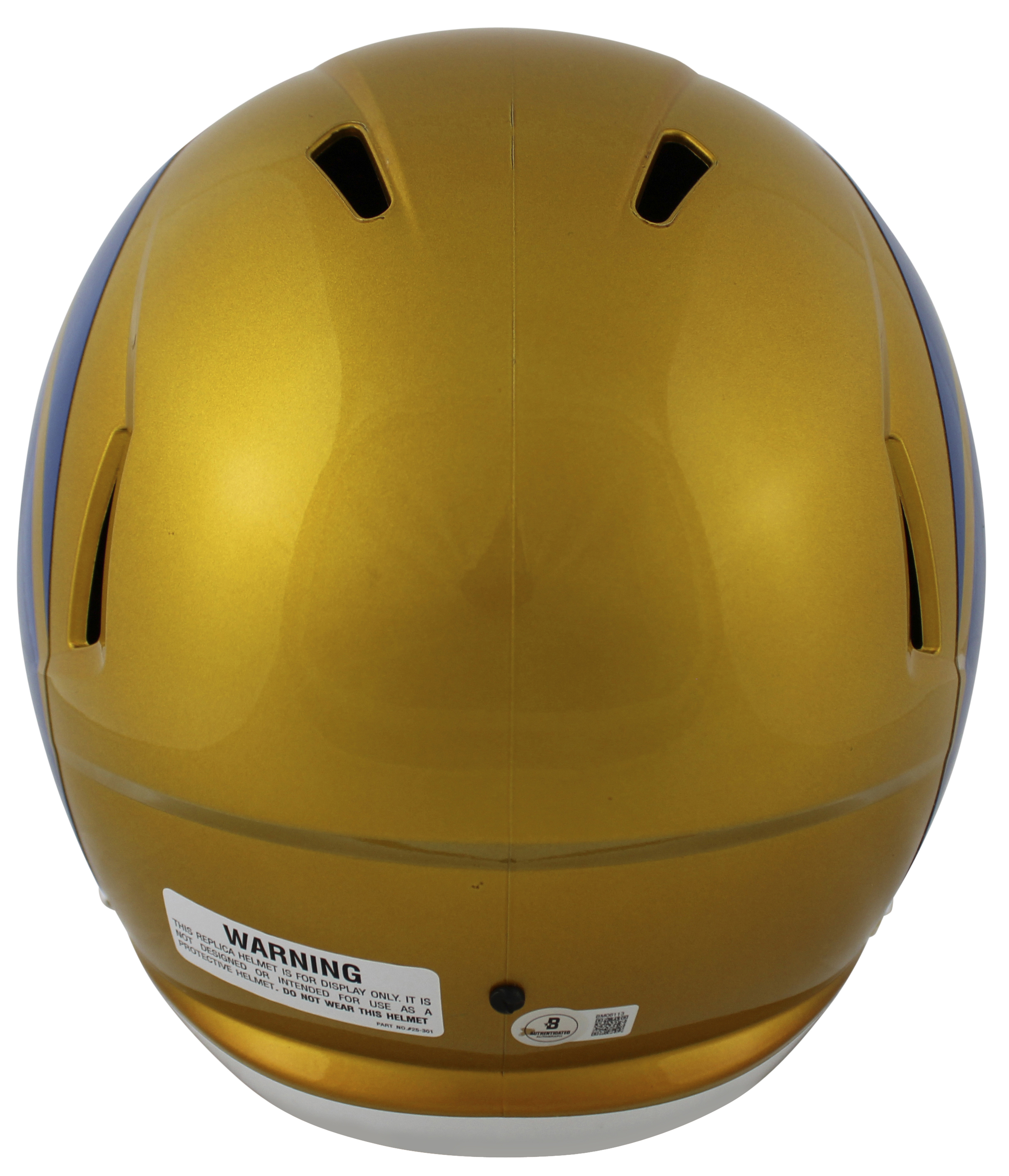 This Autographed Alternate Flash Riddell Full Size Speed Rep Helmet has been Personally Signed by Kyren Williams of the Los Angeles Rams. This item is 100% Authentic to include a hologram by Beckett Authentication Services. This item will come with an affixed Beckett Authentication Services (BAS) authentication sticker, which includes a scannable QR code to verify authenticity. Please note that Beckett no longer provides serial-numbered COA cards, and the attached BAS sticker will serve as the complete authentication for this item. We conducted an autograph signing with Kyren Williams where multiples of the same item were signed. While the photographs are representative of this item, the size, placement and strength of the signature may vary. Each item is hand signed, therefore, each autograph is unique. This item can be verified through BAS.