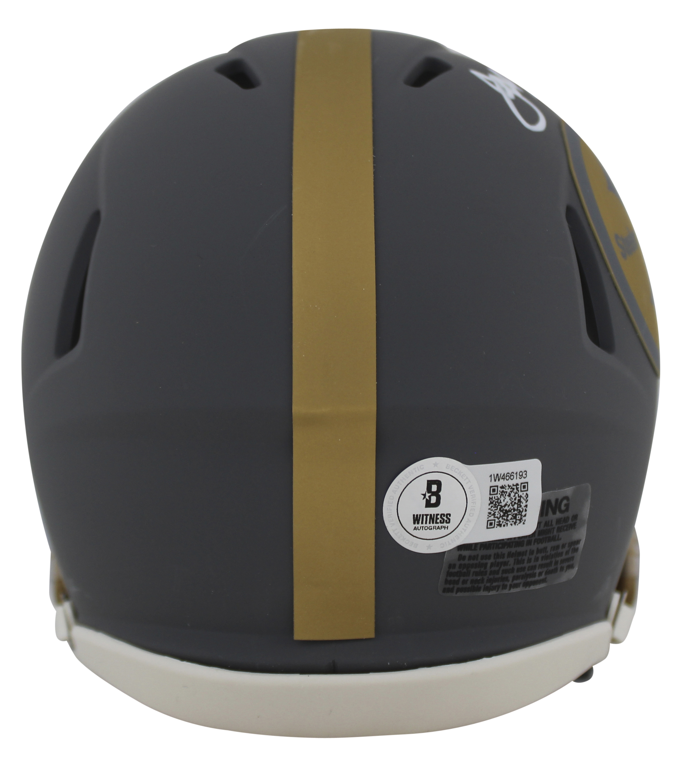 This Autographed Alternate Slate Speed Mini Helmet with the inscription of "HOF 87" has been Personally Signed by Joe Greene of the Pittsburgh Steelers. This item is 100% Authentic to include a Certificate of Authenticity (COA) / hologram by Beckett Authentication Services. This is a BAS Witnessed Protection Program item which means a Beckett Authentication Service representative was present when this item was being signed. We conducted an autograph signing with Joe Greene where multiples of the same item were signed. While the photographs are representative of this item, the size, placement and strength of the signature may vary. Each item is hand signed, therefore, each autograph is unique. This item can be verified through BAS Witnessed.