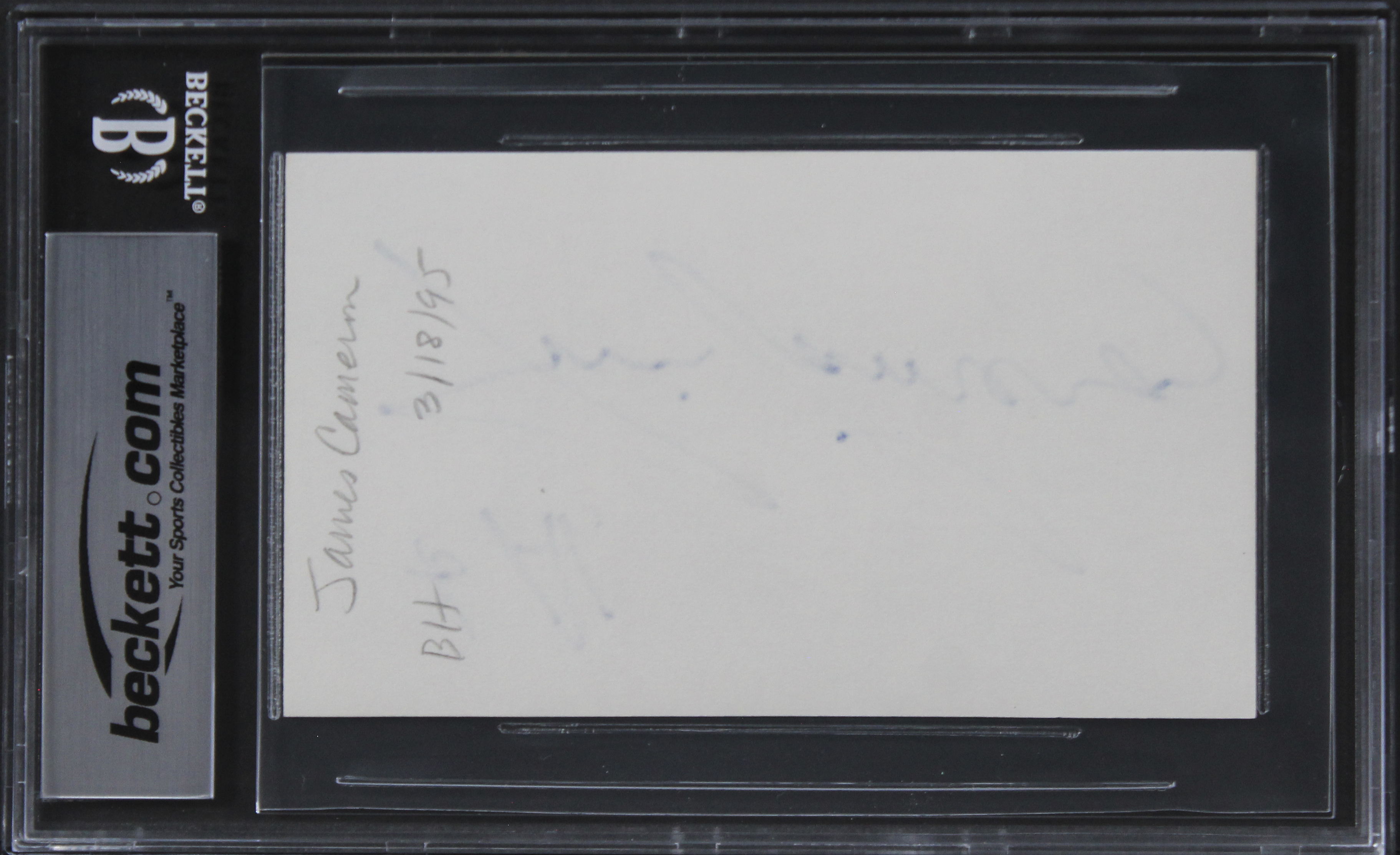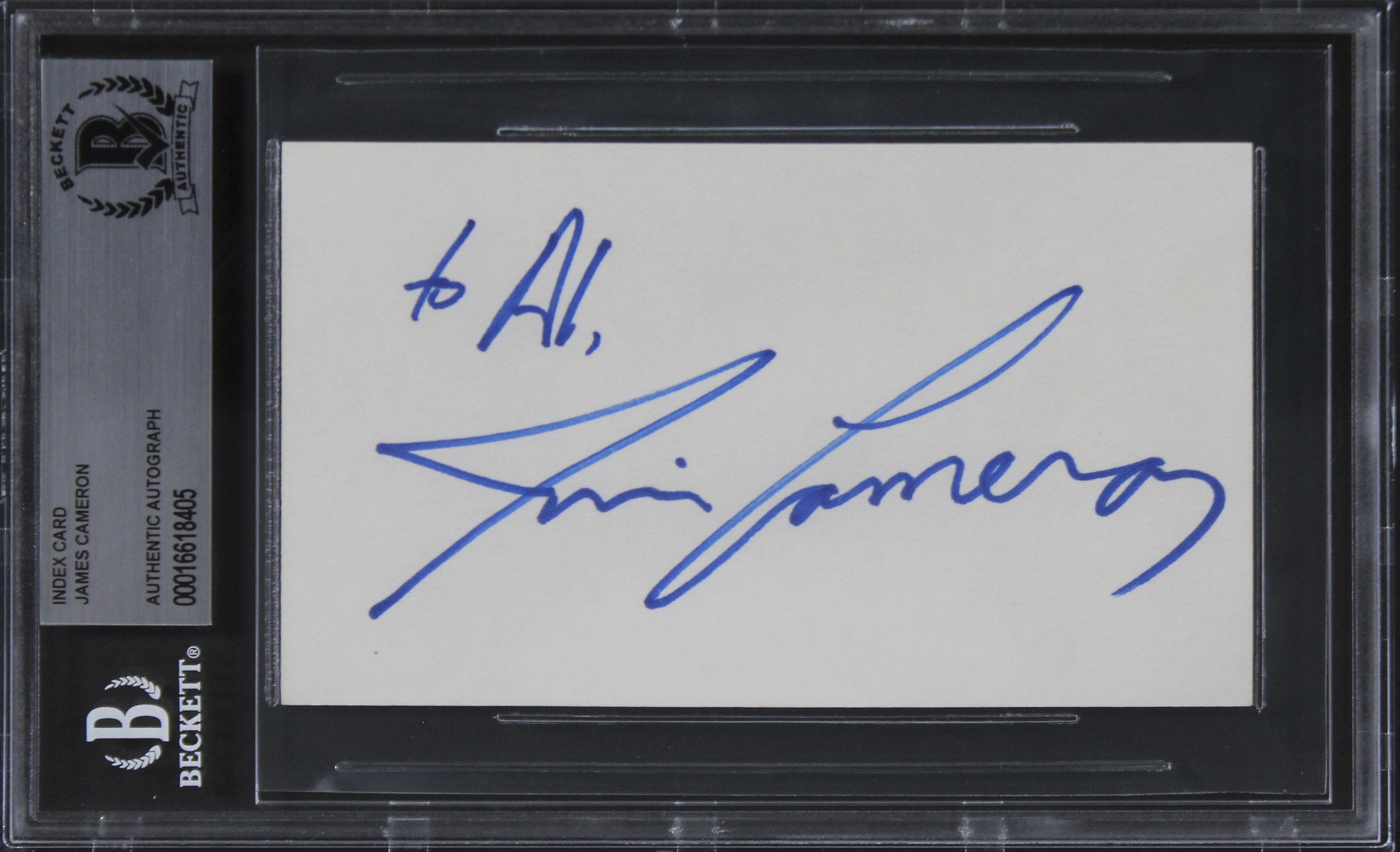 This Autographed 3x5 Index Card with the inscription of ""To Al"" has been Personally Signed by James Cameron of Titanic. This item is 100% Authentic, it comes slabbed and authenticated by Beckett Authentication Services. The authenticity can be verified on Beckett Authentication Services website.