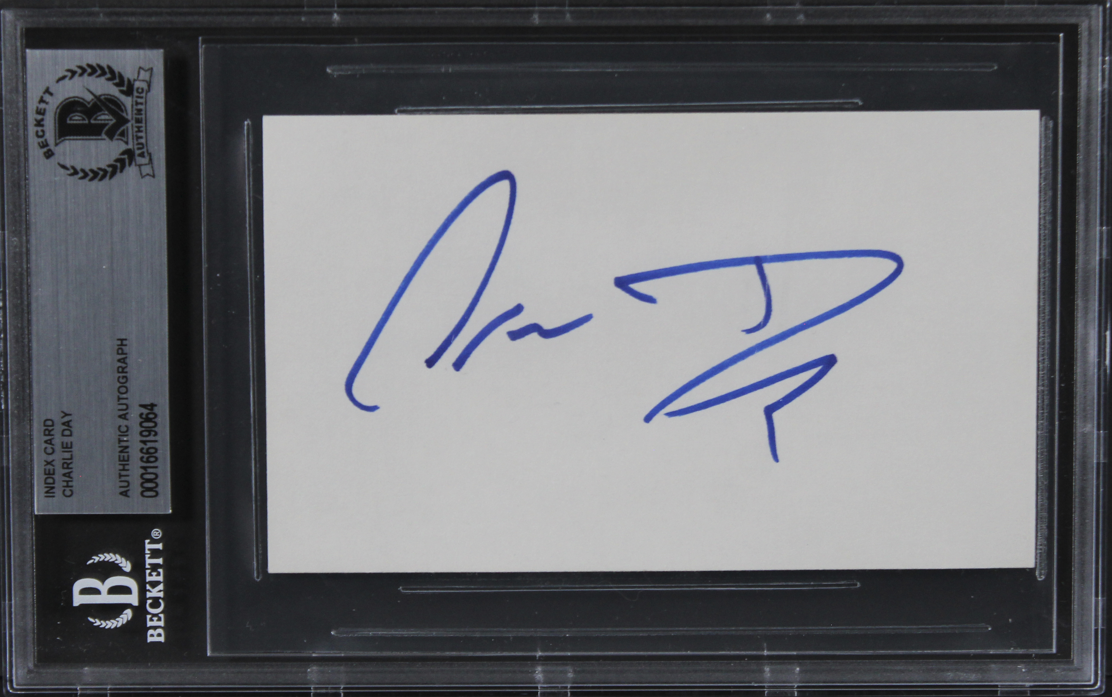 This Autographed 3x5 Index Card has been Personally Signed by Charlie Day of It's Always Sunny in Philadelphia. This item is 100% Authentic, it comes slabbed and authenticated by Beckett Authentication Services. The authenticity can be verified on Beckett Authentication Services website.