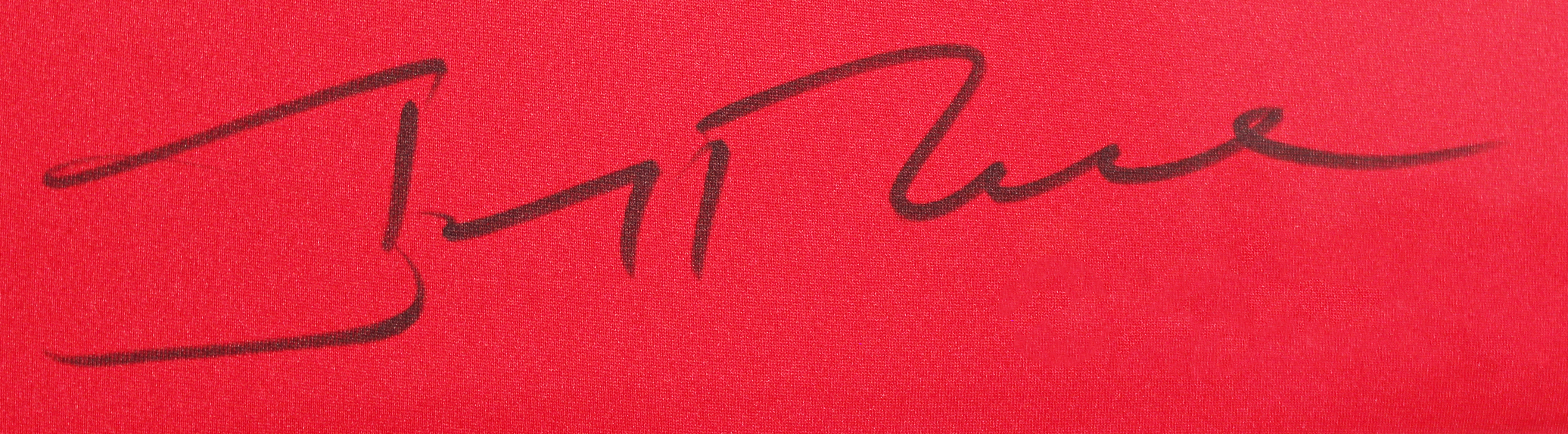 This Autographed Red Nike Game Framed Jersey has been Personally Signed by Jerry Rice of the San Francisco 49ers. This item is 100% Authentic to includes a numbered hologram by Fanatics. We conducted an autograph signing with Jerry Rice where multiples of the same item were signed. While the photographs are representative of this item, the size, placement and strength of the signature may vary. Each item is hand signed, therefore, each autograph is unique. This item can be verified through Fanatics. This item has been professionally framed to overall dimensions of approximately 32 x 37 inches. These jerseys are framed to order, it takes approximately 3-4 business days for framing to be completed.