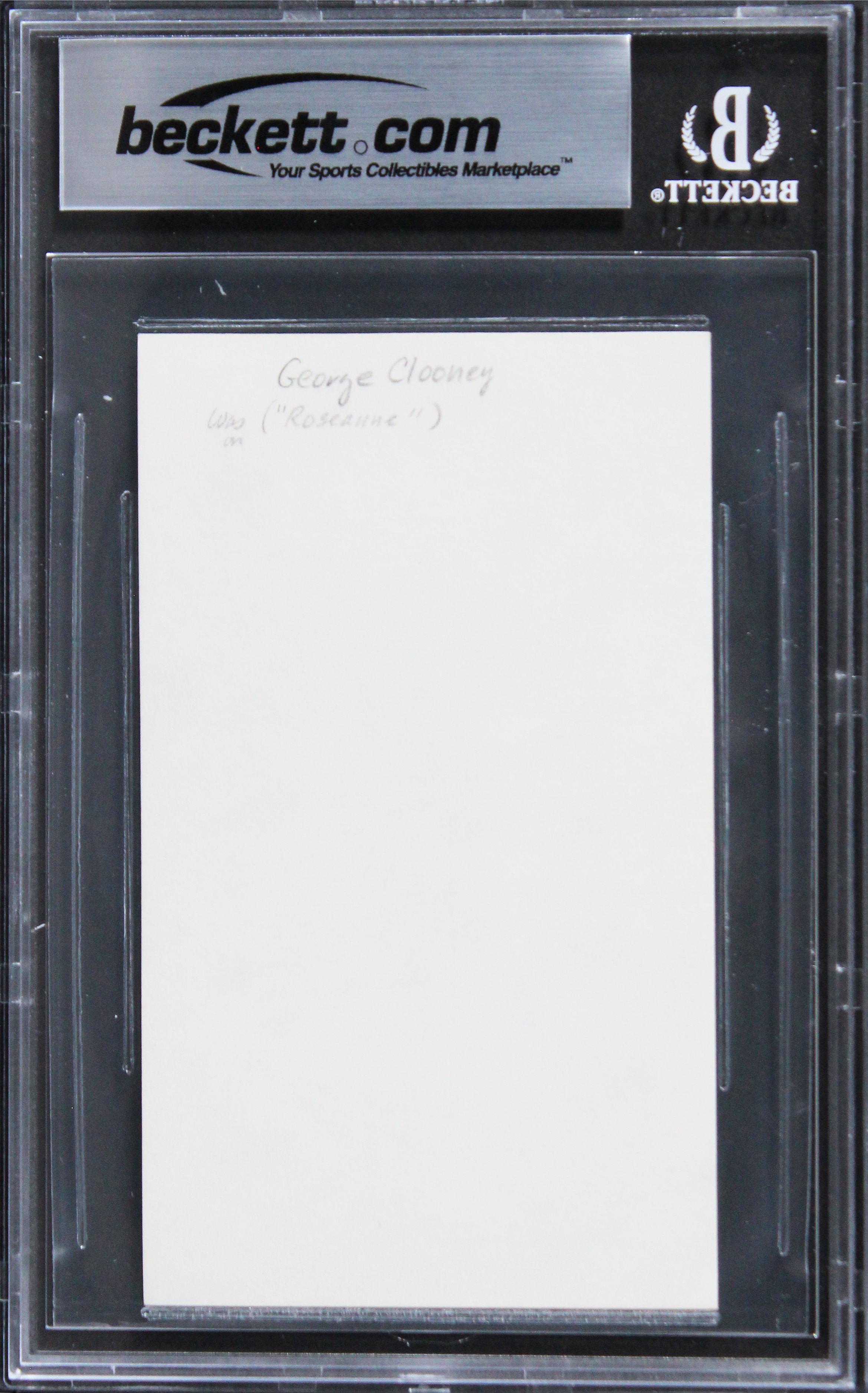 This Autographed 3x5 Index Card has been Personally Signed by George Clooney of Ocean's 11. This item is 100% Authentic, it comes slabbed and authenticated by Beckett Authentication Services. The authenticity can be verified on Beckett Authentication Services website.