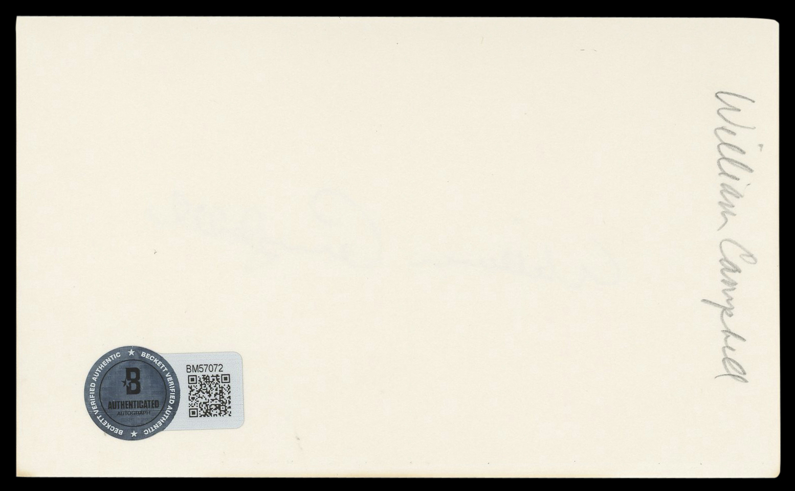 This Autographed 3x5 Index Card has been Personally Signed by William Campbell of Star Trek. This item is 100% Authentic to include a hologram by Beckett Authentication Services. This item will come with an affixed Beckett Authentication Services (BAS) authentication sticker, which includes a scannable QR code to verify authenticity. Please note that Beckett no longer provides serial-numbered COA cards, and the attached BAS sticker will serve as the complete authentication for this item. The authenticity can be verified on Beckett Authentication Services website.