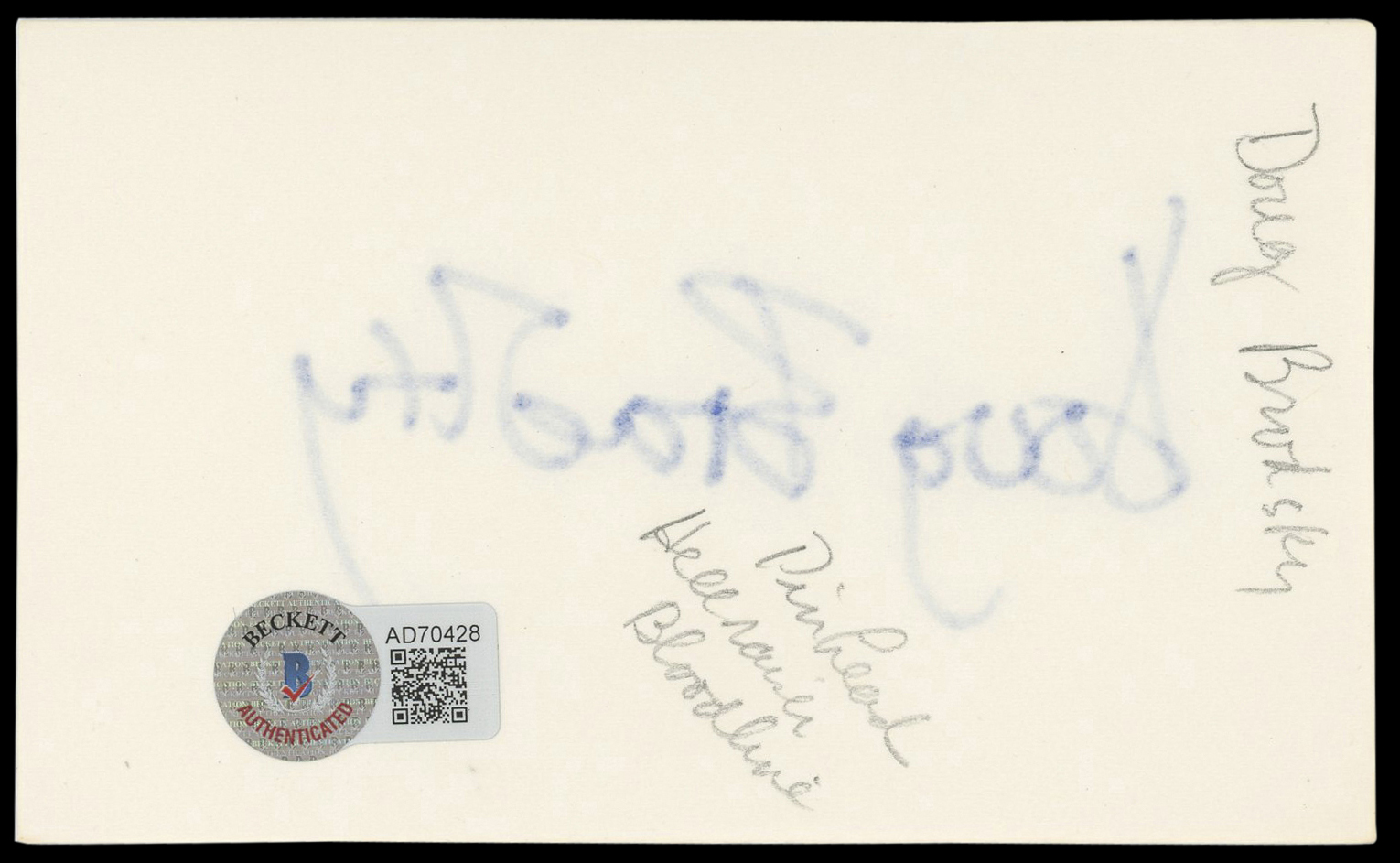 This Autographed 3x5 Index Card has been Personally Signed by Doug Bradley of Hellraiser. This item is 100% Authentic to include a hologram by Beckett Authentication Services. This item will come with an affixed Beckett Authentication Services (BAS) authentication sticker, which includes a scannable QR code to verify authenticity. Please note that Beckett no longer provides serial-numbered COA cards, and the attached BAS sticker will serve as the complete authentication for this item. The authenticity can be verified on Beckett Authentication Services website.