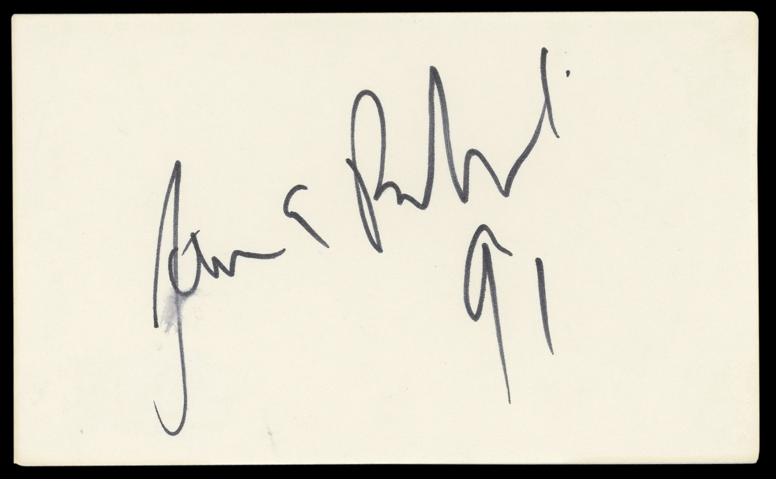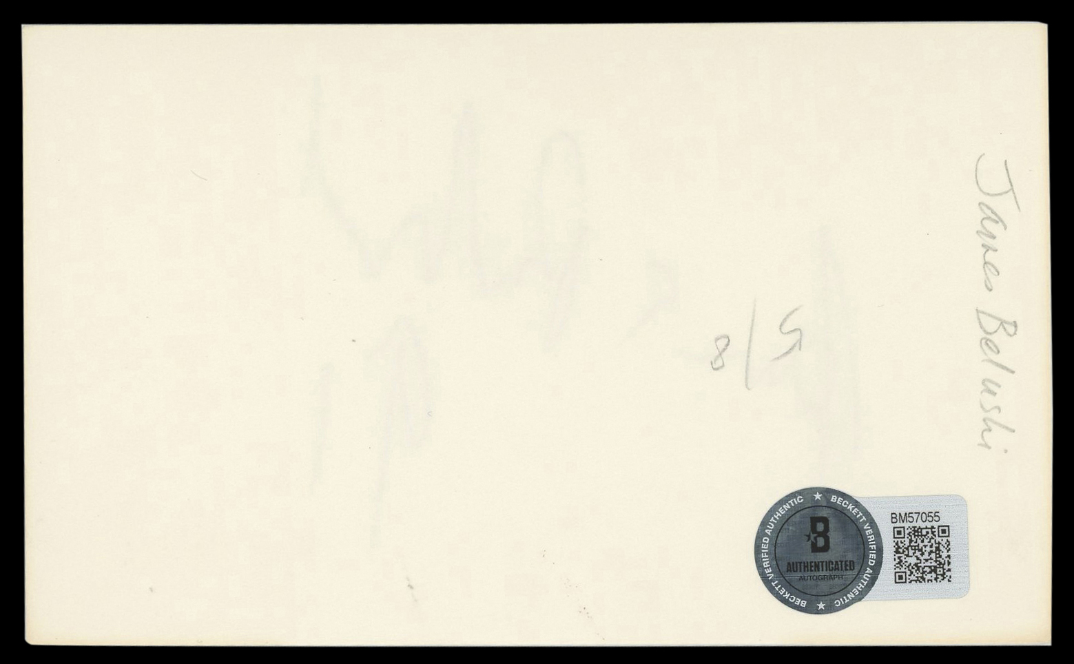 This Autographed 3x5 Index Card with the inscription of "91" has been Personally Signed by James Belushi of According To Jim. This item is 100% Authentic to include a hologram by Beckett Authentication Services. This item will come with an affixed Beckett Authentication Services (BAS) authentication sticker, which includes a scannable QR code to verify authenticity. Please note that Beckett no longer provides serial-numbered COA cards, and the attached BAS sticker will serve as the complete authentication for this item. The authenticity can be verified on Beckett Authentication Services website.