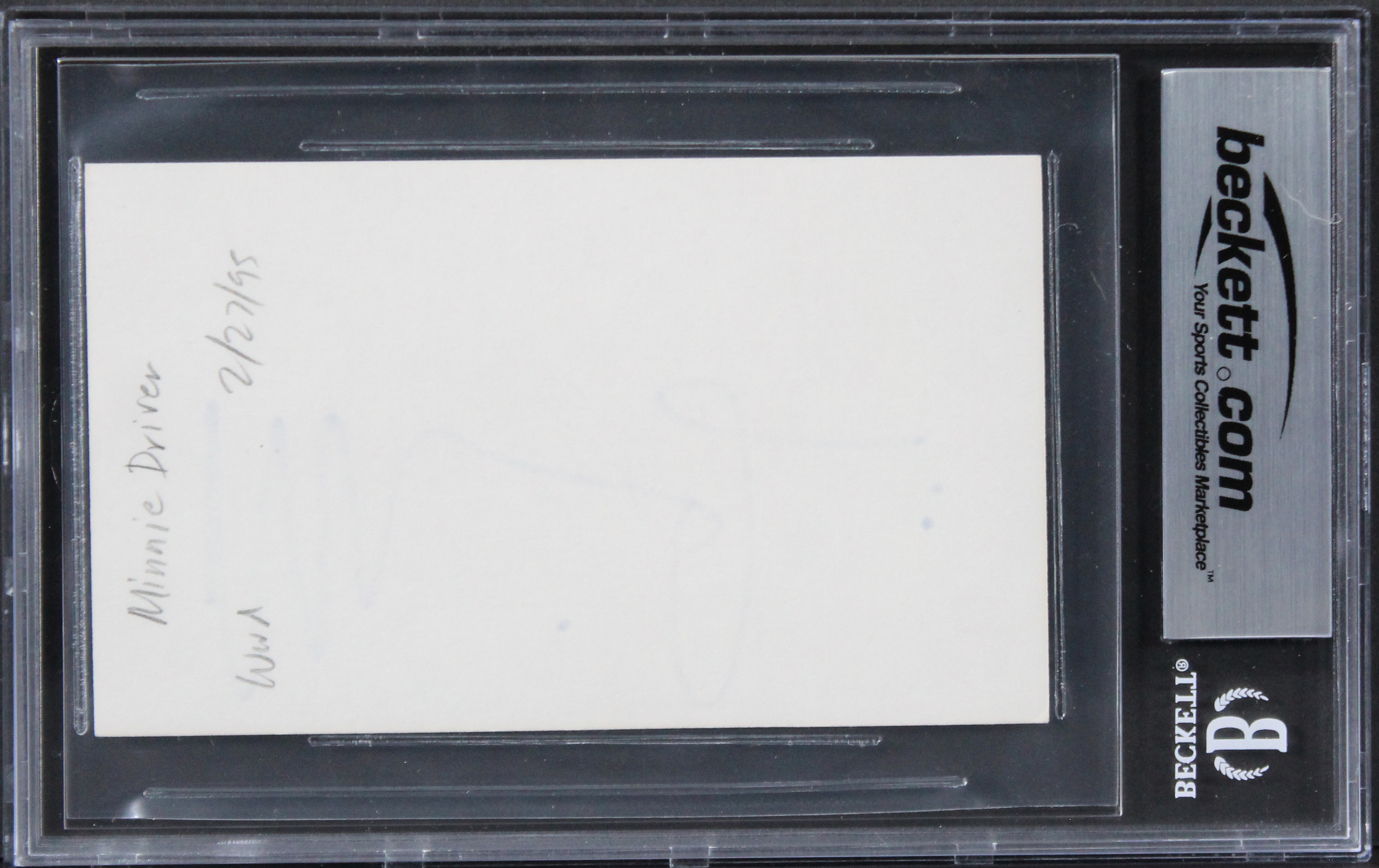 This Autographed 3x5 Index Card has been Personally Signed by Minnie Driver of Good Will Hunting. This item is 100% Authentic, it comes slabbed and authenticated by Beckett Authentication Services. The authenticity can be verified on Beckett Authentication Services website.
