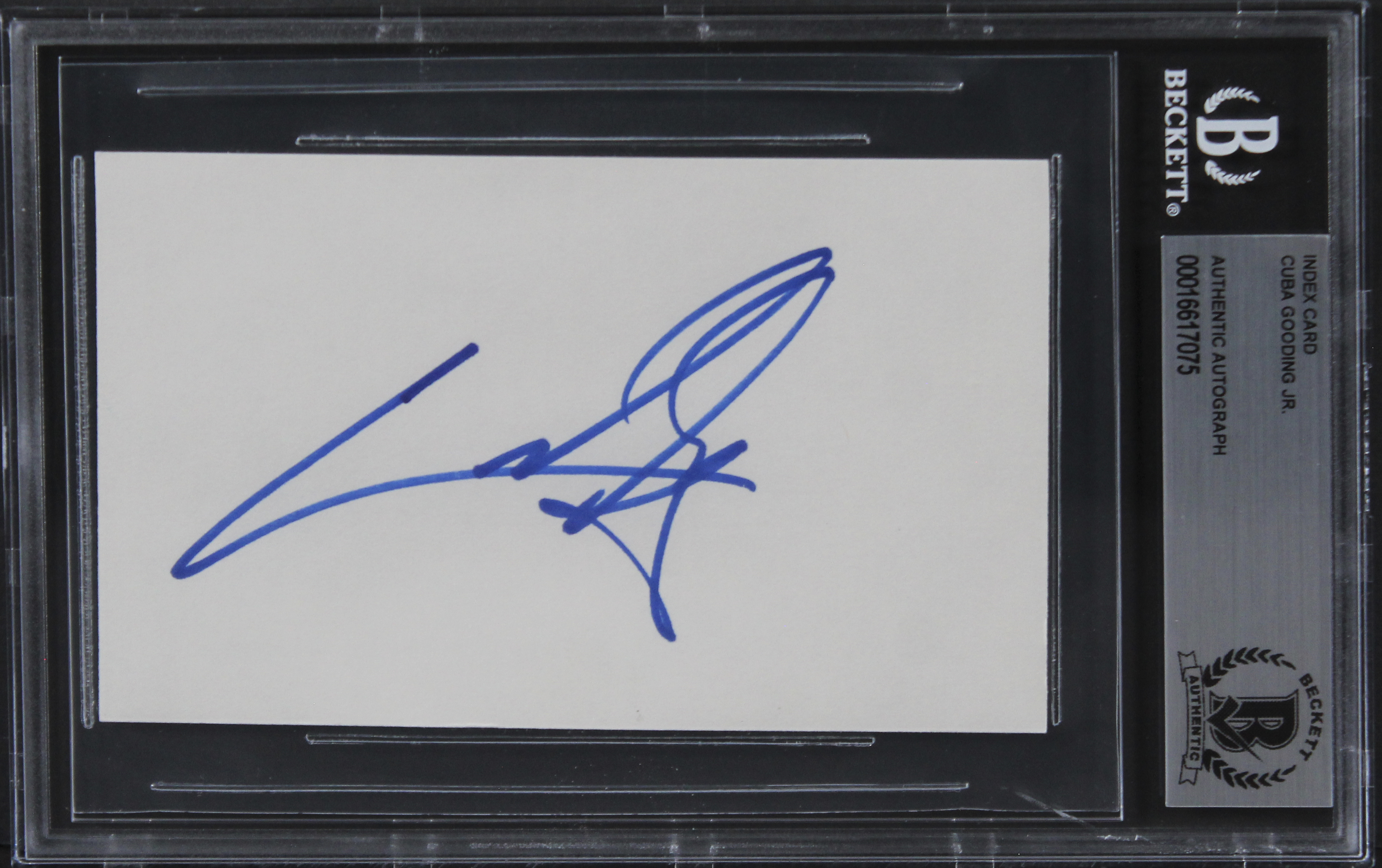 This Autographed 3x5 Index Card has been Personally Signed by Cuba Gooding Jr. of Boyz N The Hood. This item is 100% Authentic, it comes slabbed and authenticated by Beckett Authentication Services. The authenticity can be verified on Beckett Authentication Services website.