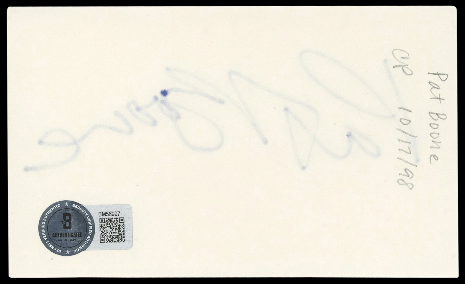 This Autographed 3x5 Index Card has been Personally Signed by Pat Boone of Superman Returns. This item is 100% Authentic to include a hologram by Beckett Authentication Services. This item will come with an affixed Beckett Authentication Services (BAS) authentication sticker, which includes a scannable QR code to verify authenticity. Please note that Beckett no longer provides serial-numbered COA cards, and the attached BAS sticker will serve as the complete authentication for this item. The authenticity can be verified on Beckett Authentication Services website.