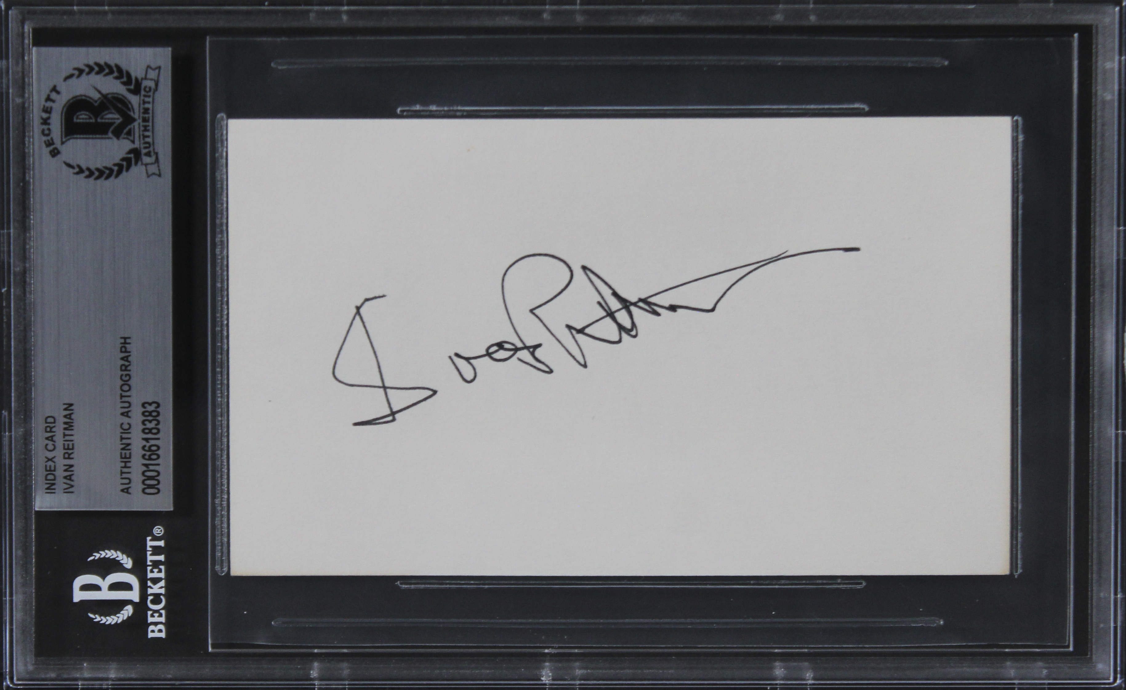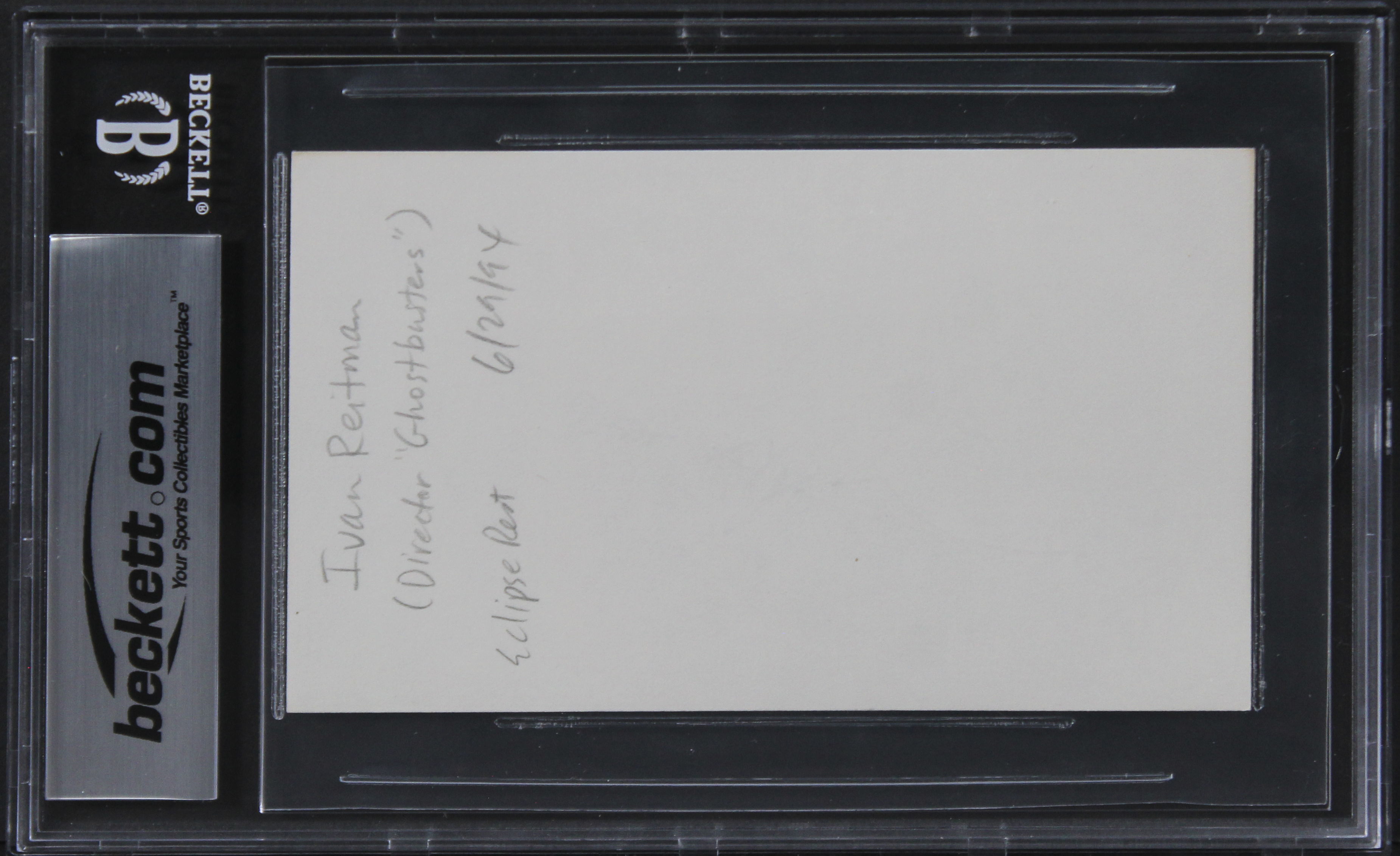 This Autographed 3x5 Index Card has been Personally Signed by Ivan Reitman of Ghostbusters. This item is 100% Authentic, it comes slabbed and authenticated by Beckett Authentication Services. The authenticity can be verified on Beckett Authentication Services website.