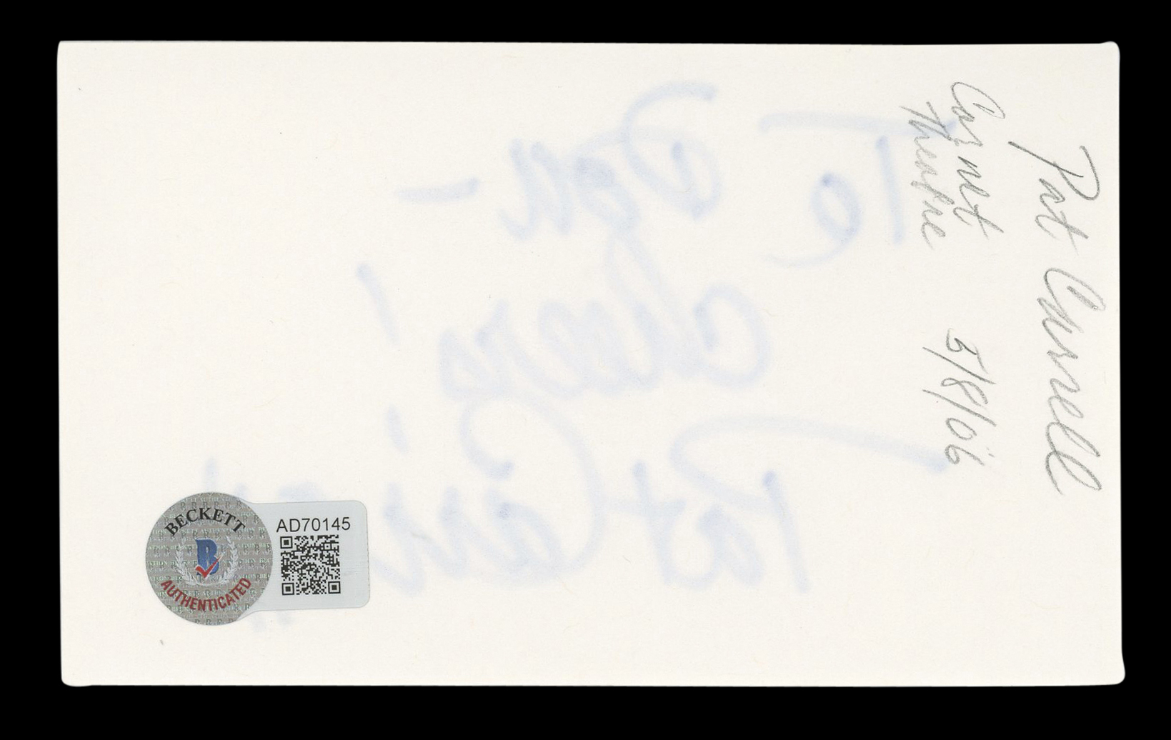 This Autographed 3x5 Index Card with the inscription of "To Don-Cheers!" has been Personally Signed by Pat Carroll of The Little Mermaid. This item is 100% Authentic to include a hologram by Beckett Authentication Services. This item will come with an affixed Beckett Authentication Services (BAS) authentication sticker, which includes a scannable QR code to verify authenticity. Please note that Beckett no longer provides serial-numbered COA cards, and the attached BAS sticker will serve as the complete authentication for this item. The authenticity can be verified on Beckett Authentication Services website.