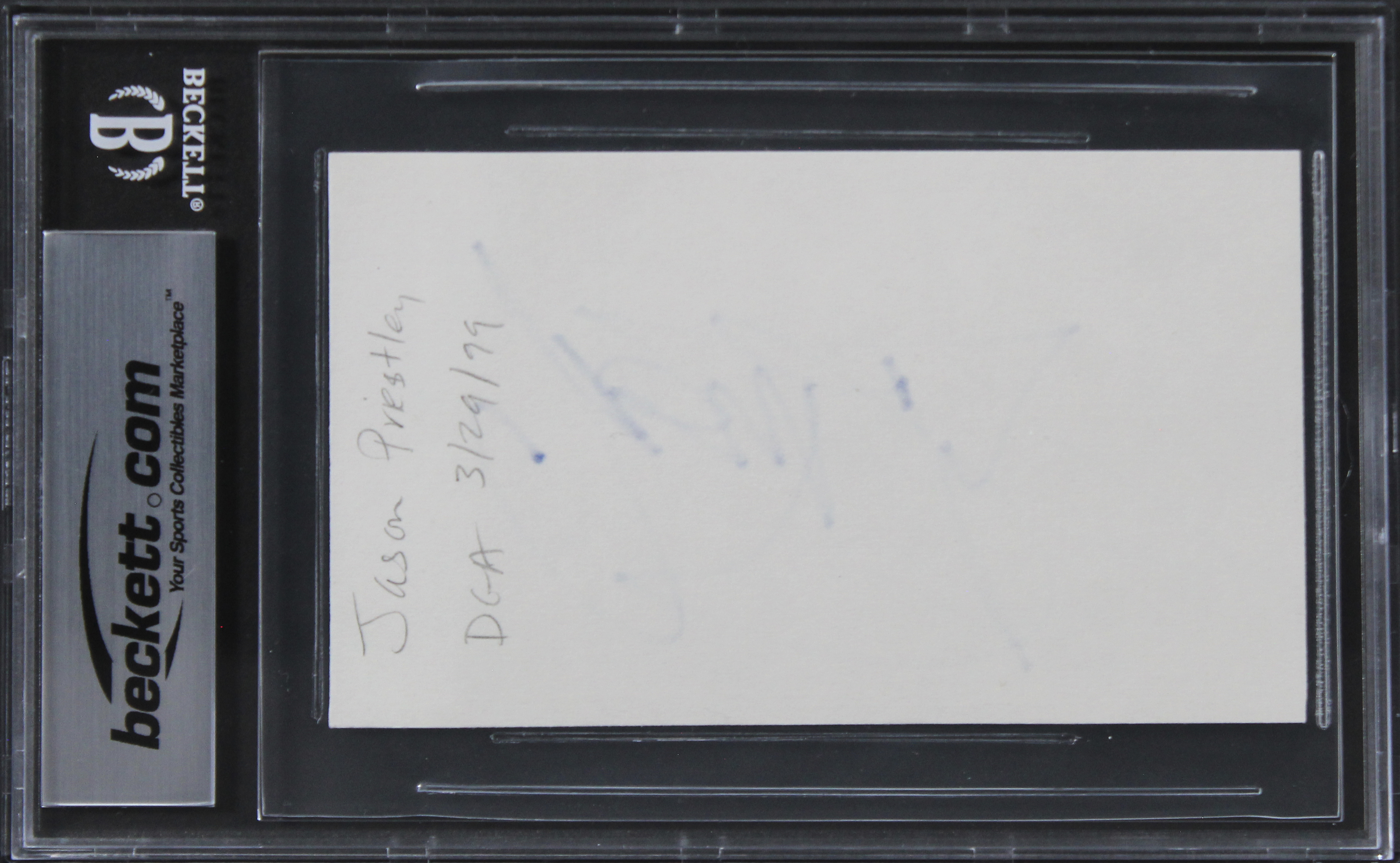 This Autographed 3x5 Index Card has been Personally Signed by Jason Priestley of Beverly Hills, 90210. This item is 100% Authentic, it comes slabbed and authenticated by Beckett Authentication Services. The authenticity can be verified on Beckett Authentication Services website.