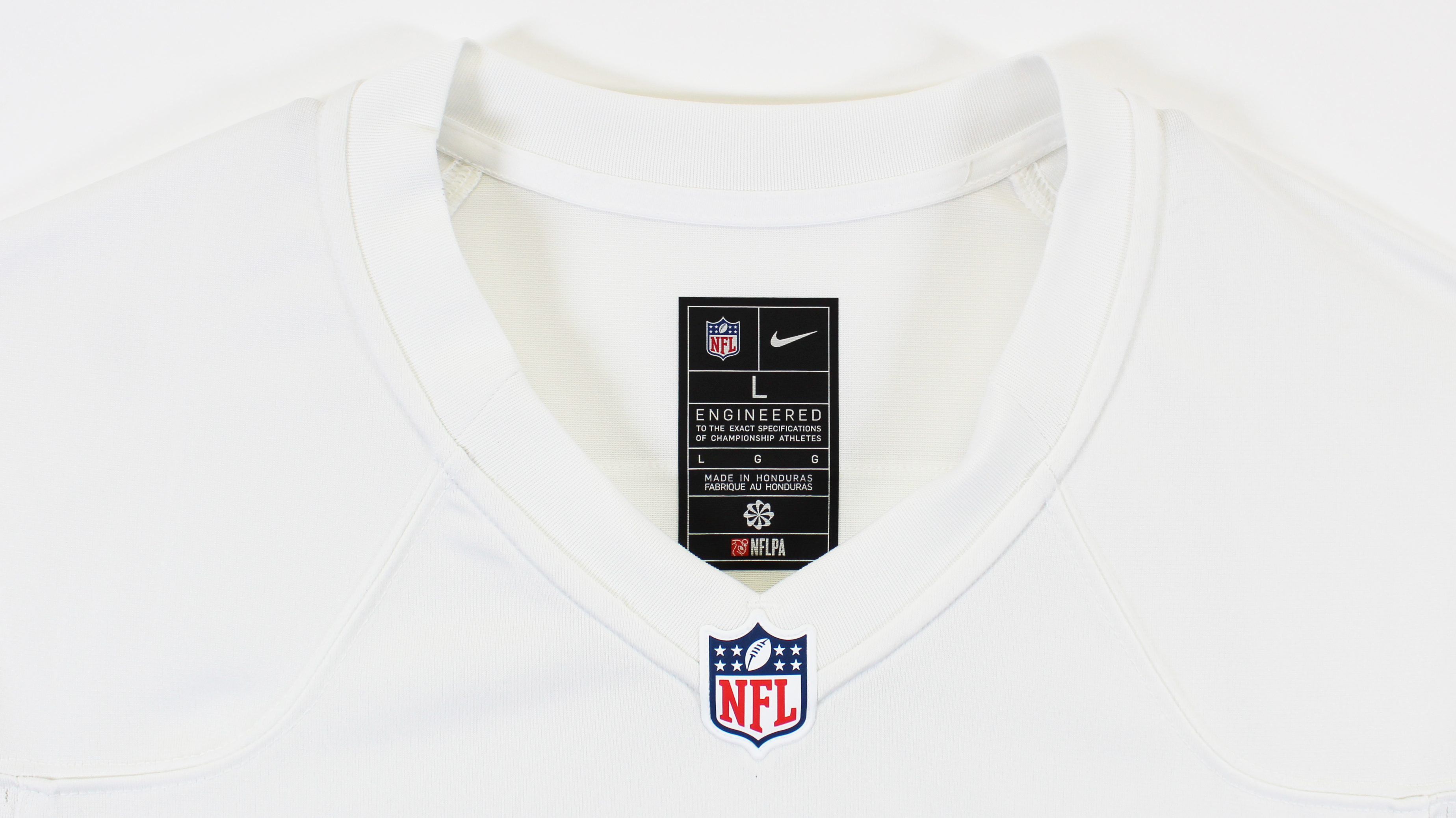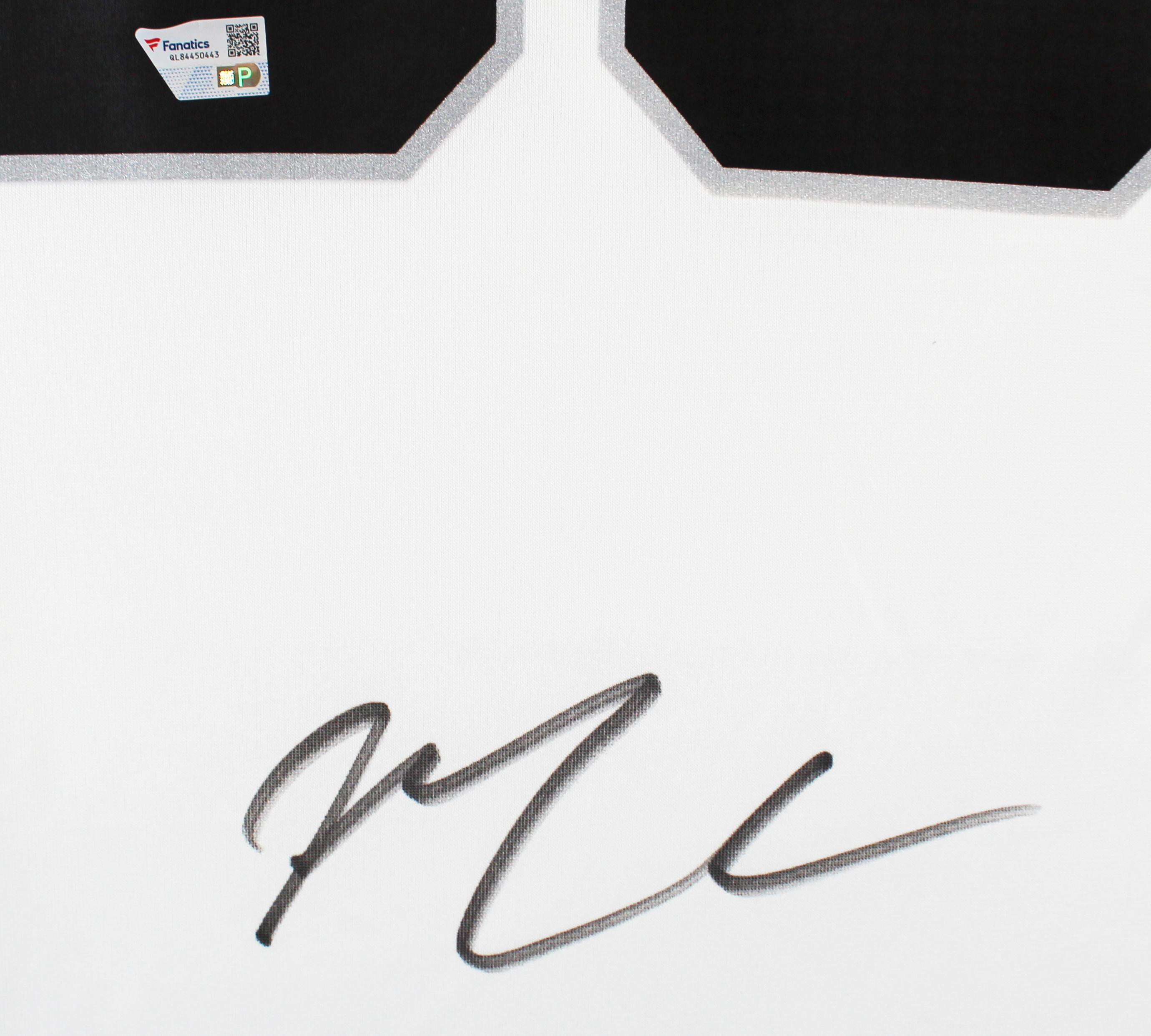 This Autographed White Nike Game Jersey has been Personally Signed by Maxx Crosby of the Las Vegas Raiders. This item is 100% Authentic to includes a numbered hologram by Fanatics. We conducted an autograph signing with Maxx Crosby where multiples of the same item were signed. While the photographs are representative of this item, the size, placement and strength of the signature may vary. Each item is hand signed, therefore, each autograph is unique. This item can be verified through Fanatics. This is a X-Large sized Jersey.