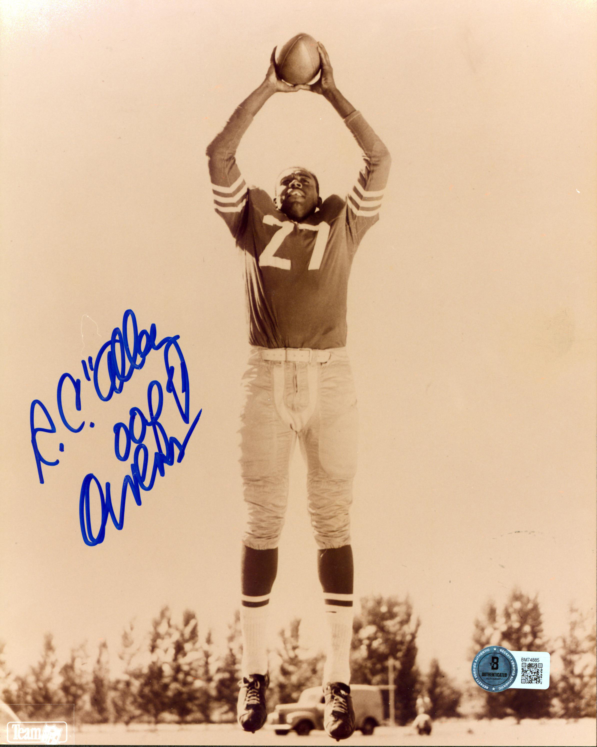 This Autographed 8x10 Photo with the inscription of "Alley Oop" has been Personally Signed by R.C. Owens of the San Francisco 49ers. This item is 100% Authentic to include a hologram by Beckett Authentication Services. This item will come with an affixed Beckett Authentication Services (BAS) authentication sticker, which includes a scannable QR code to verify authenticity. Please note that Beckett no longer provides serial-numbered COA cards, and the attached BAS sticker will serve as the complete authentication for this item. We have multiples of this same item. While the photographs are representative of this item, the size, placement and strength of the signature may vary. Each item is hand signed, therefore, each autograph is unique.