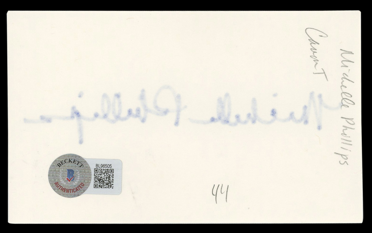 Michelle Phillips Knots Landing Authentic Signed 3x5 Index Card BAS #BL96505