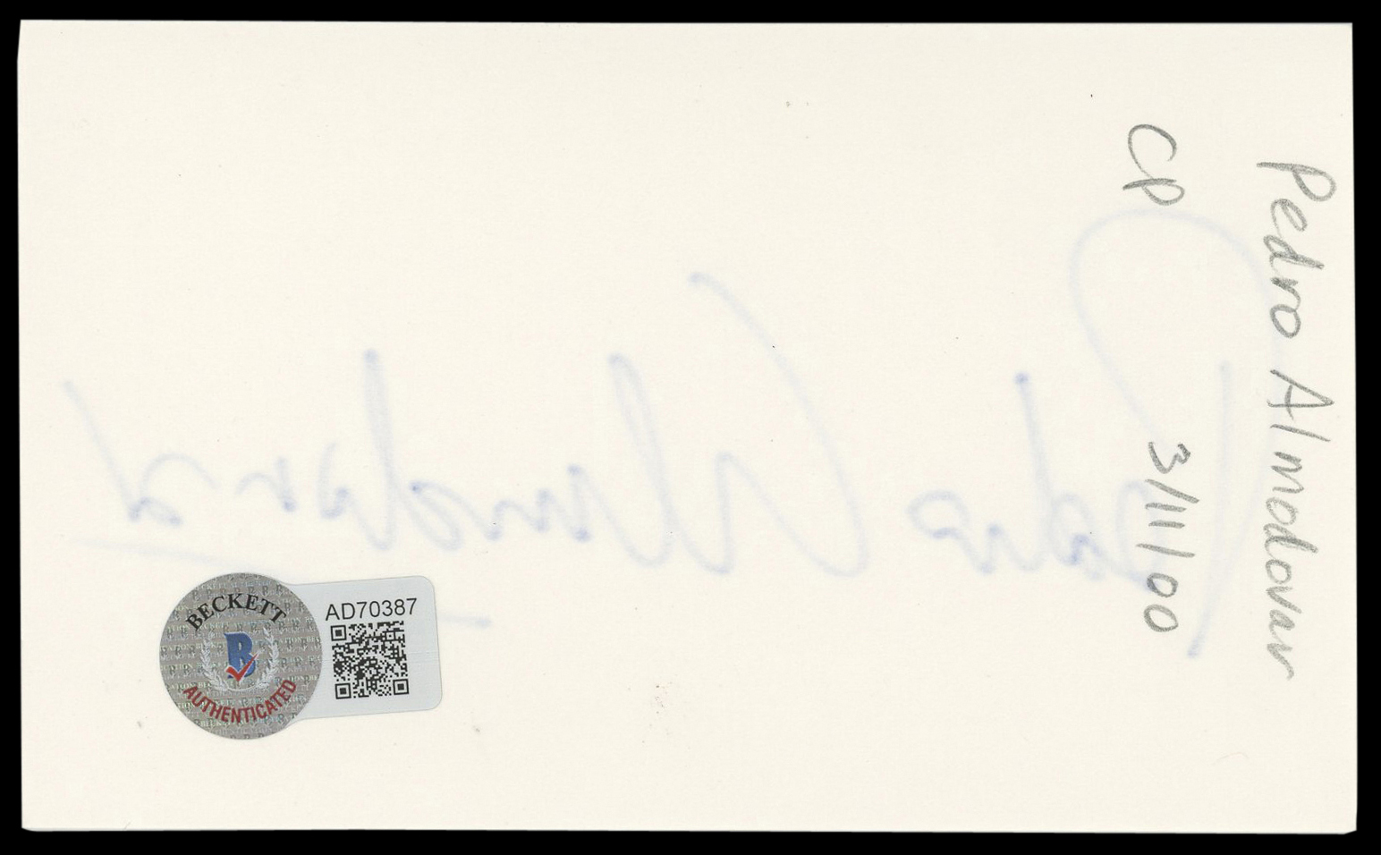 This Autographed 3x5 Index Card has been Personally Signed by Pedro Almod��var of Strange Way of Life. This item is 100% Authentic to include a hologram by Beckett Authentication Services. This item will come with an affixed Beckett Authentication Services (BAS) authentication sticker, which includes a scannable QR code to verify authenticity. Please note that Beckett no longer provides serial-numbered COA cards, and the attached BAS sticker will serve as the complete authentication for this item. The authenticity can be verified on Beckett Authentication Services website.