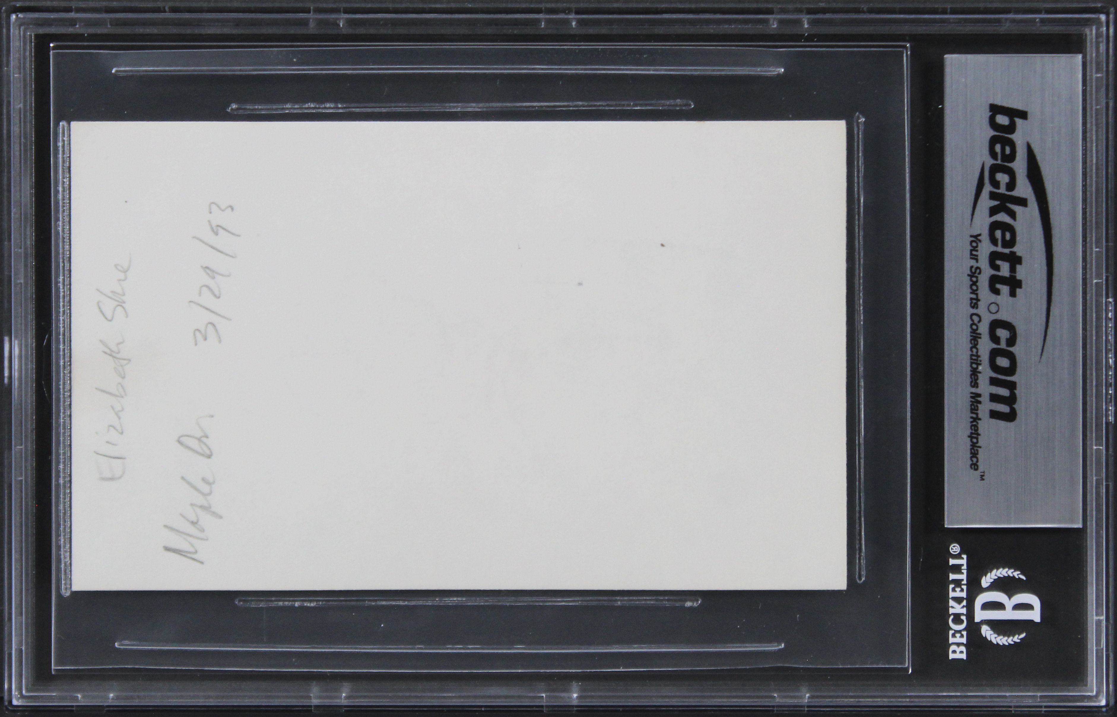 This Autographed 3x5 Index Card has been Personally Signed by Elisabeth Shue of The Karate Kid. This item is 100% Authentic, it comes slabbed and authenticated by Beckett Authentication Services. The authenticity can be verified on Beckett Authentication Services website.