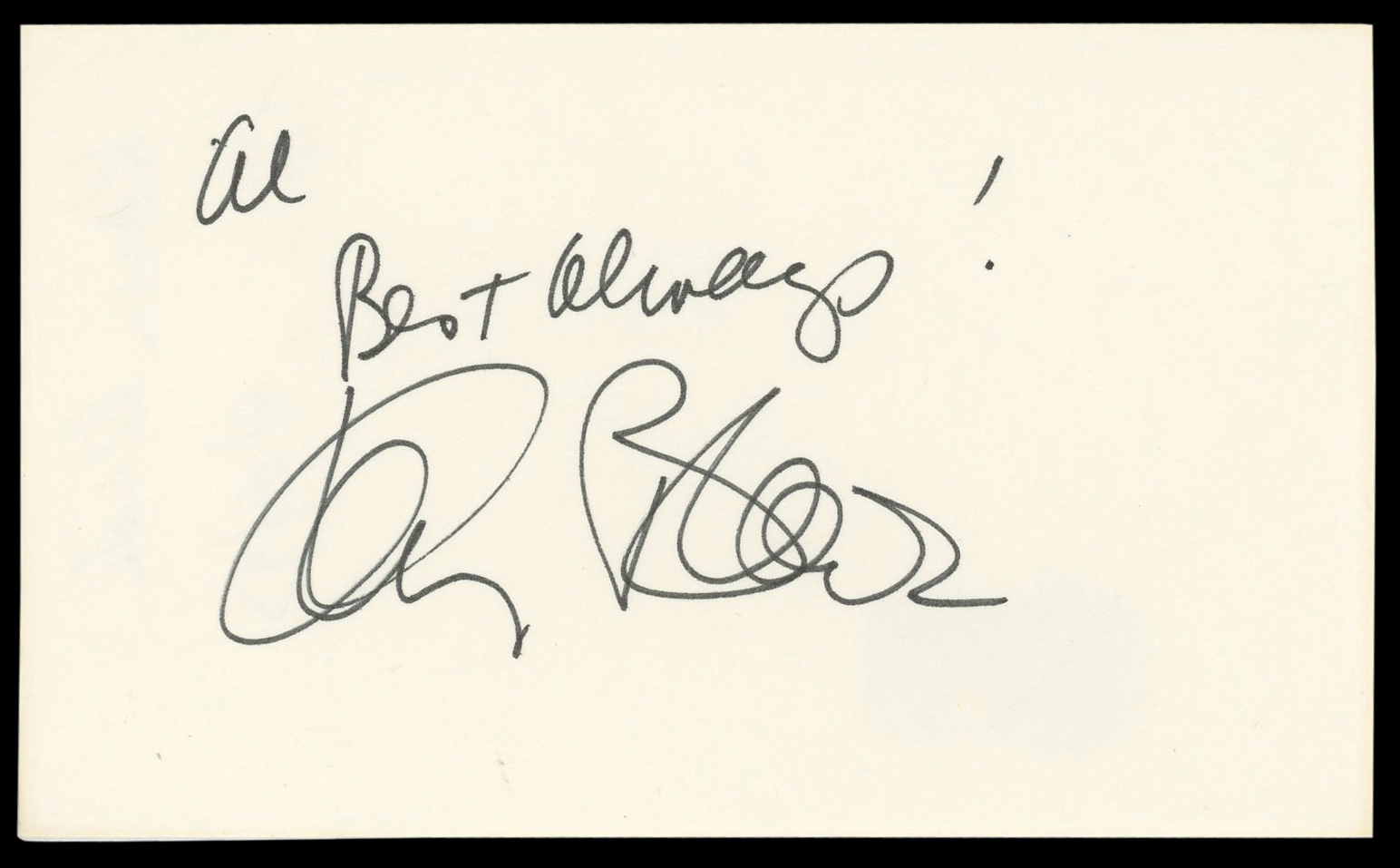 This Autographed 3x5 Index Card with the inscription of "Al, Best Always" has been Personally Signed by Karen Black of The Great Gatsby. This item is 100% Authentic to include a hologram by Beckett Authentication Services. This item will come with an affixed Beckett Authentication Services (BAS) authentication sticker, which includes a scannable QR code to verify authenticity. Please note that Beckett no longer provides serial-numbered COA cards, and the attached BAS sticker will serve as the complete authentication for this item. The authenticity can be verified on Beckett Authentication Services website.