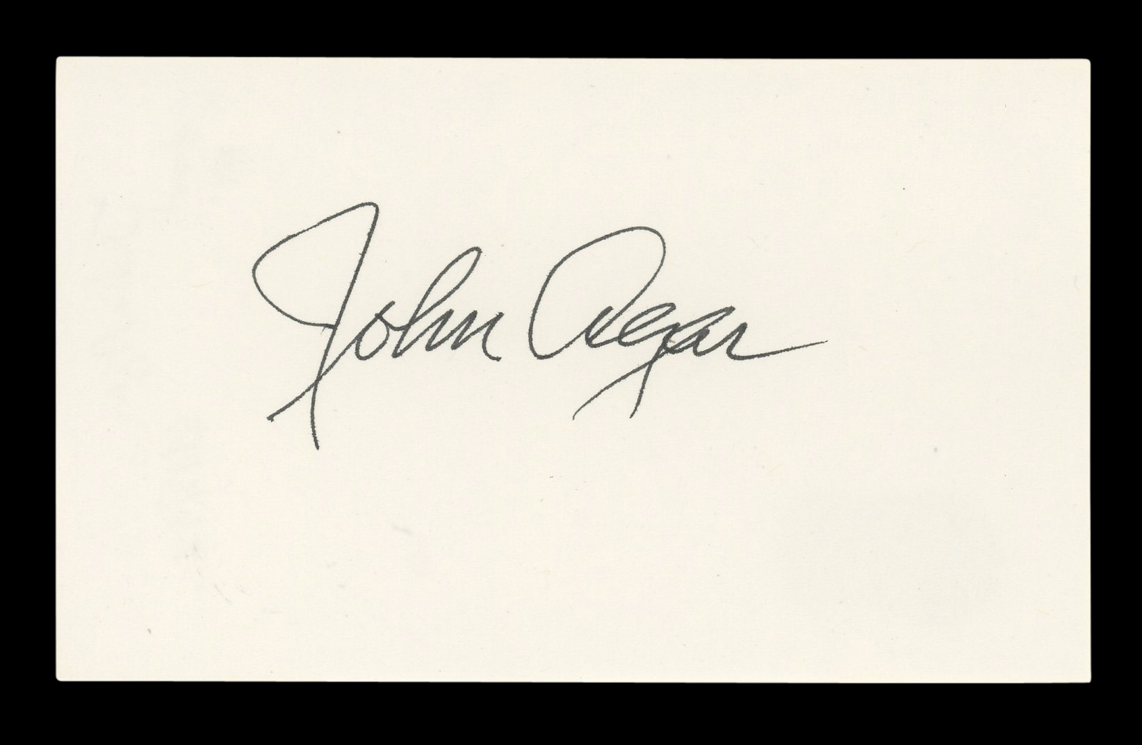 John Agar Miracle Mile Authentic Signed 3x5 Index Card Autographed BAS #AD70162