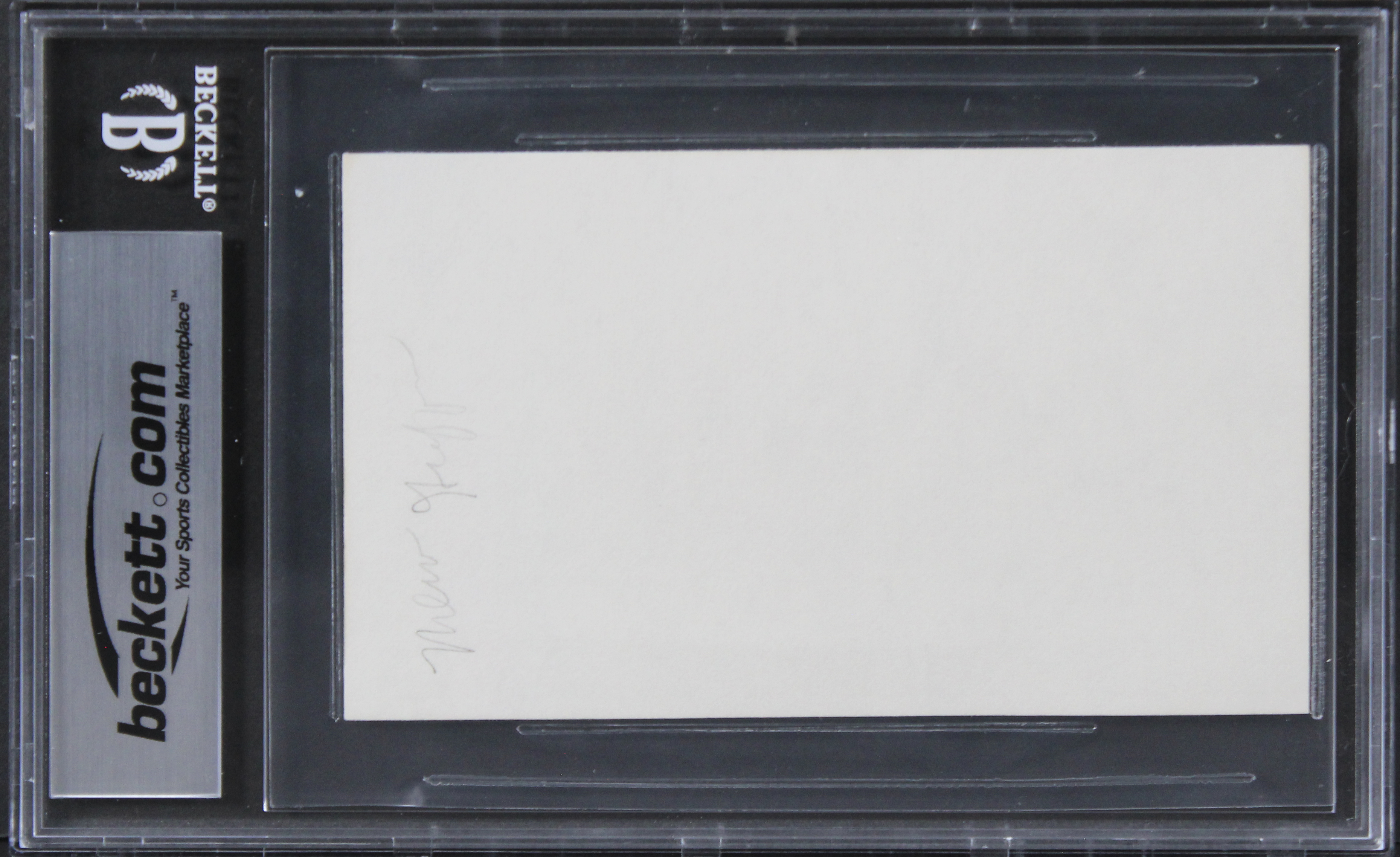 This Autographed 3x5 Index Card has been Personally Signed by Merv Griffin of The Merv Griffin Show. This item is 100% Authentic, it comes slabbed and authenticated by Beckett Authentication Services. The authenticity can be verified on Beckett Authentication Services website.