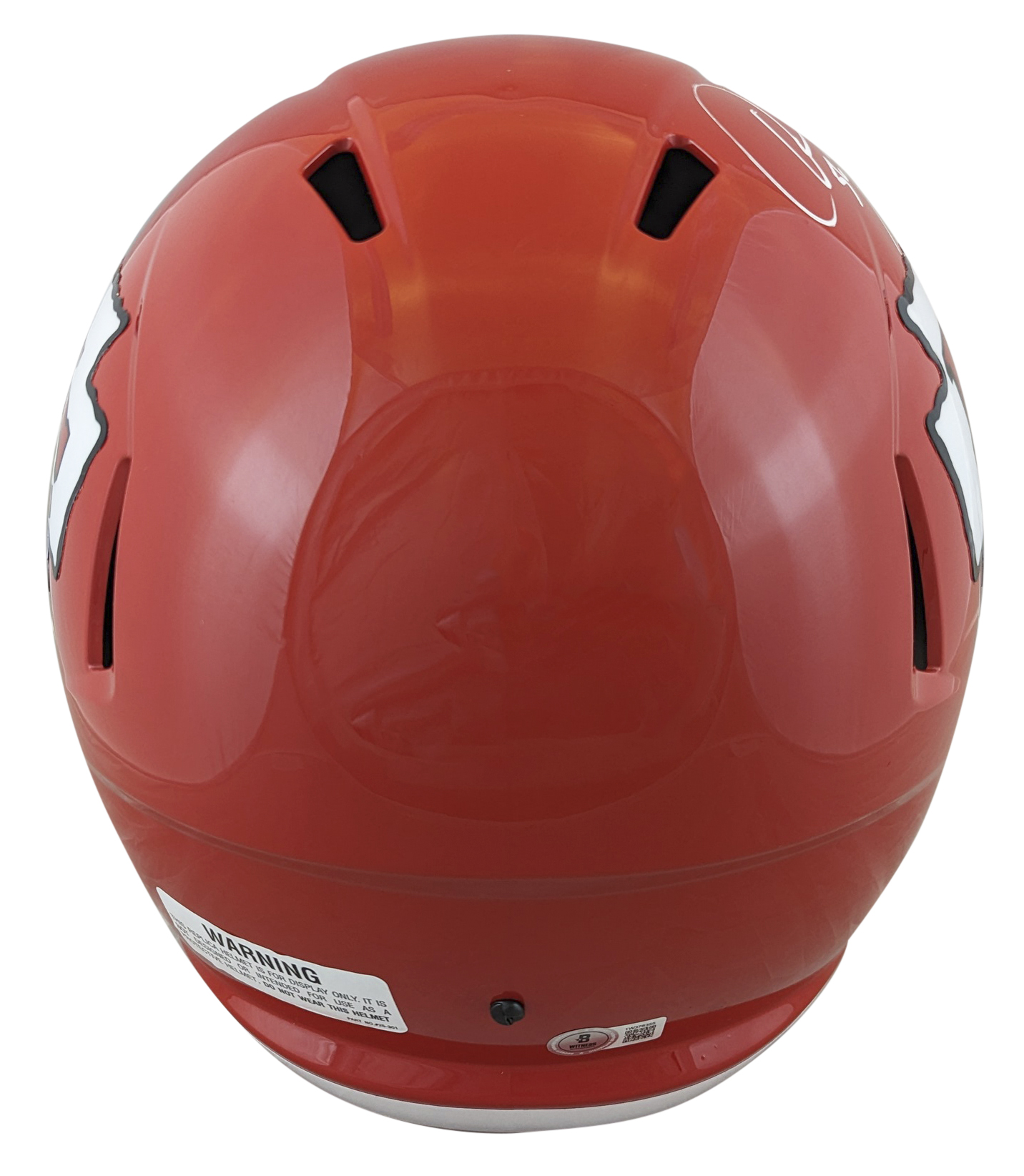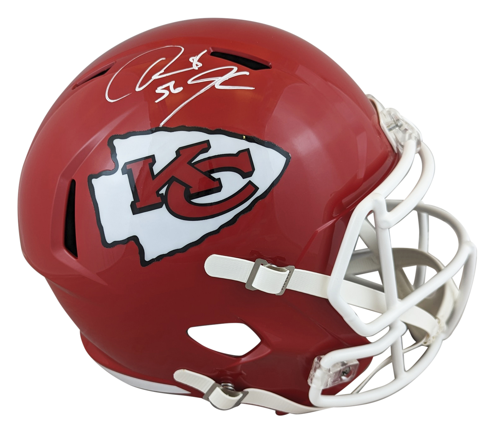 This Autographed Riddell Full Size Speed Rep Helmet W/ Uv Mirrored Back Acrylic Display Case has been Personally Signed by Derrick Johnson of the Kansas City Chiefs. This item is 100% Authentic to include a hologram by Beckett Authentication Services. This item will come with an affixed Beckett Authentication Services (BAS) authentication sticker, which includes a scannable QR code to verify authenticity. Please note that Beckett no longer provides serial-numbered COA cards, and the attached BAS sticker will serve as the complete authentication for this item. This is a BAS Witnessed Protection Program item which means a Beckett Authentication Service representative was present when this item was being signed. We conducted an autograph signing with Derrick Johnson where multiples of the same item were signed. While the photographs are representative of this item, the size, placement and strength of the signature may vary. Each item is hand signed, therefore, each autograph is unique. This item can be verified through BAS Witnessed.