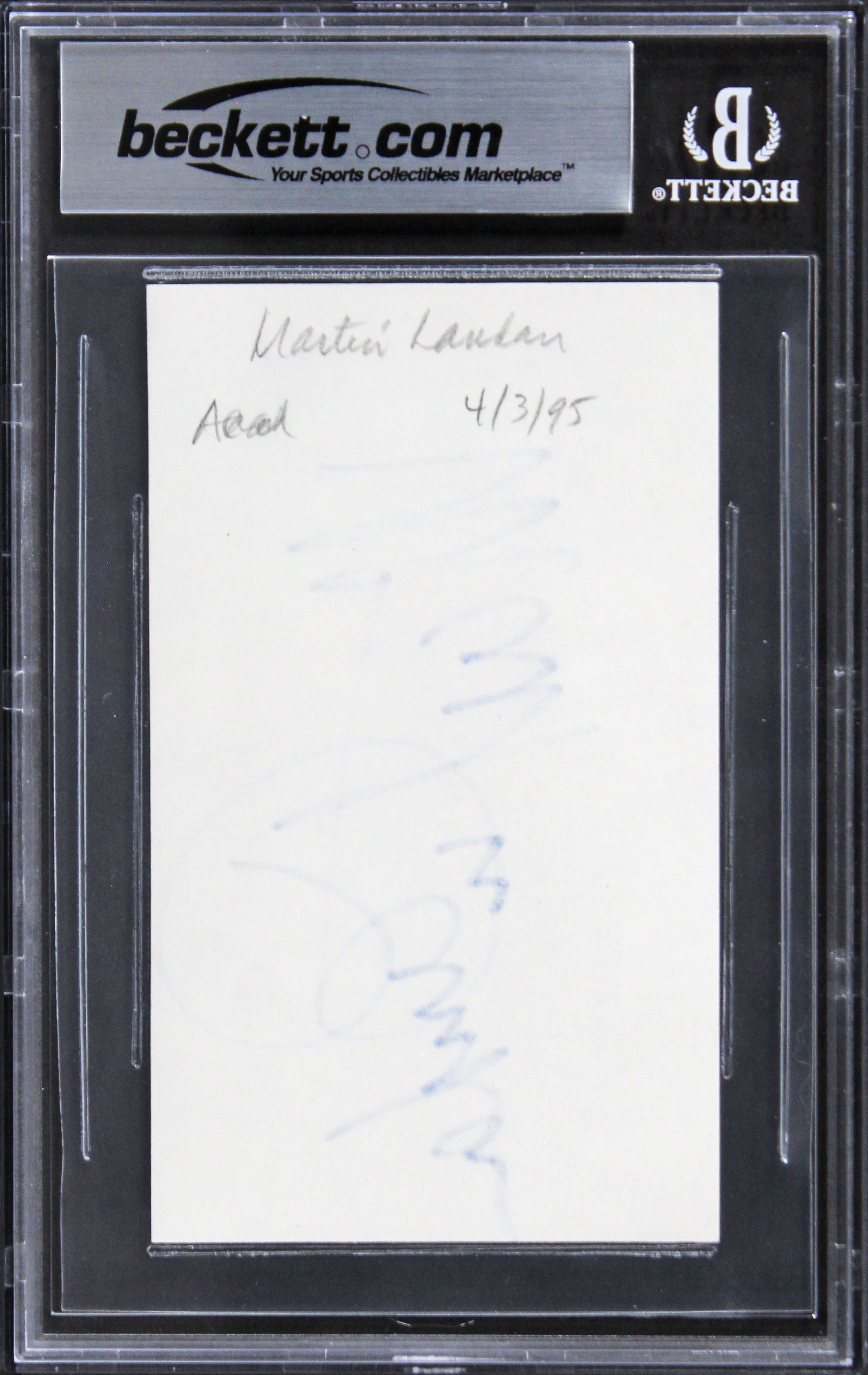 This Autographed 3x5 Index Card has been Personally Signed by Martin Landau of Crimes and Misdemeanors . This item is 100% Authentic, it comes slabbed and authenticated by Beckett Authentication Services. The authenticity can be verified on Beckett Authentication Services website.