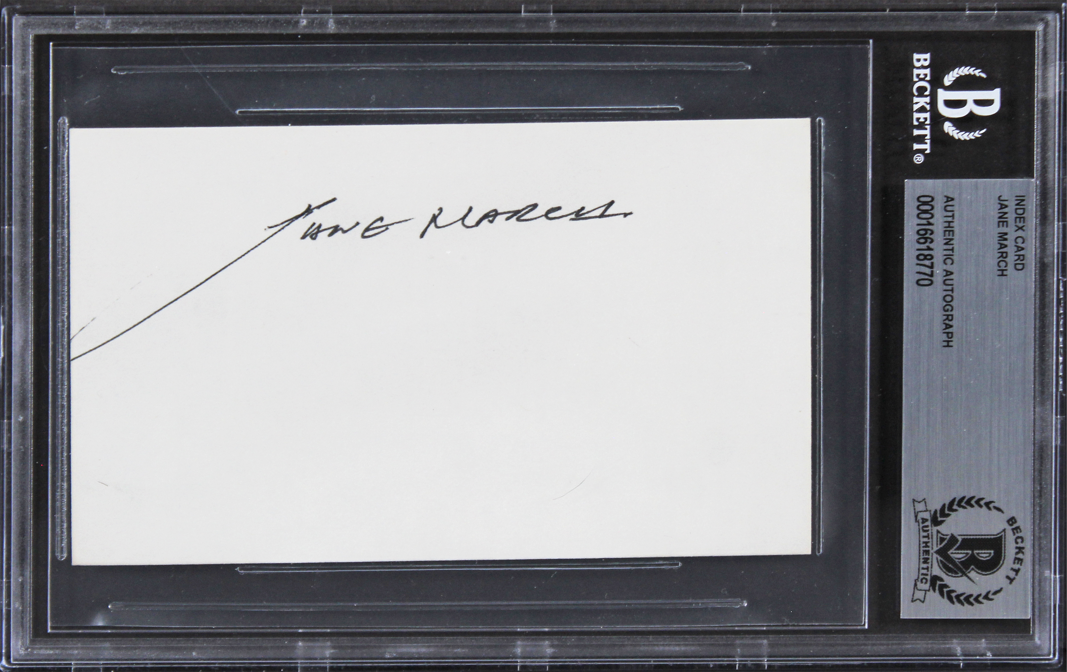 This Autographed 3x5 Index Card has been Personally Signed by Jane March of Color of Night. This item is 100% Authentic, it comes slabbed and authenticated by Beckett Authentication Services. The authenticity can be verified on Beckett Authentication Services website.