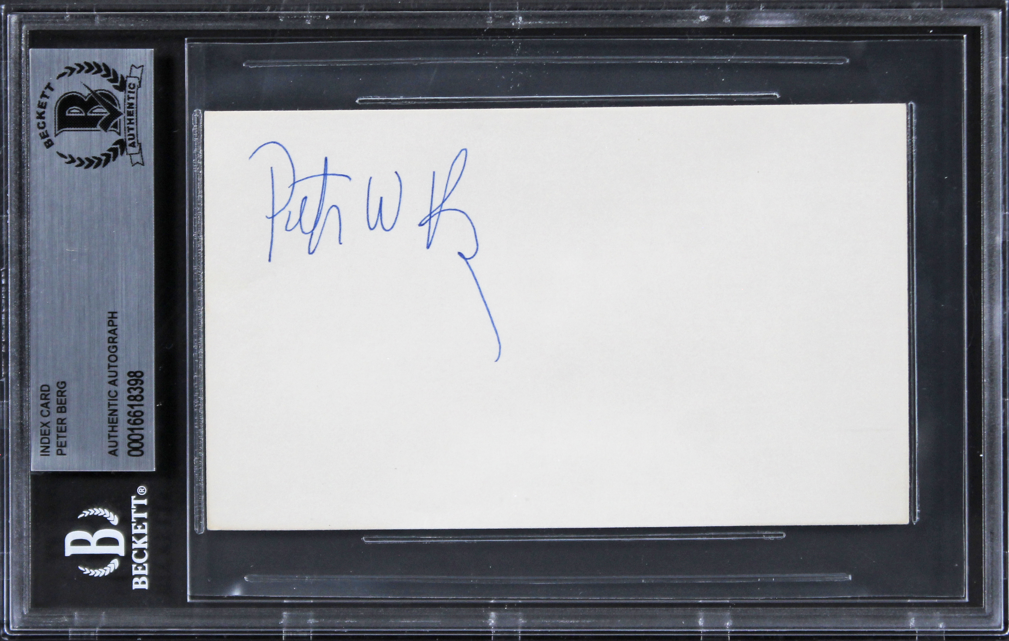 This Autographed 3x5 Index Card has been Personally Signed by Peter Berg of Patriots Day. This item is 100% Authentic, it comes slabbed and authenticated by Beckett Authentication Services. The authenticity can be verified on Beckett Authentication Services website.