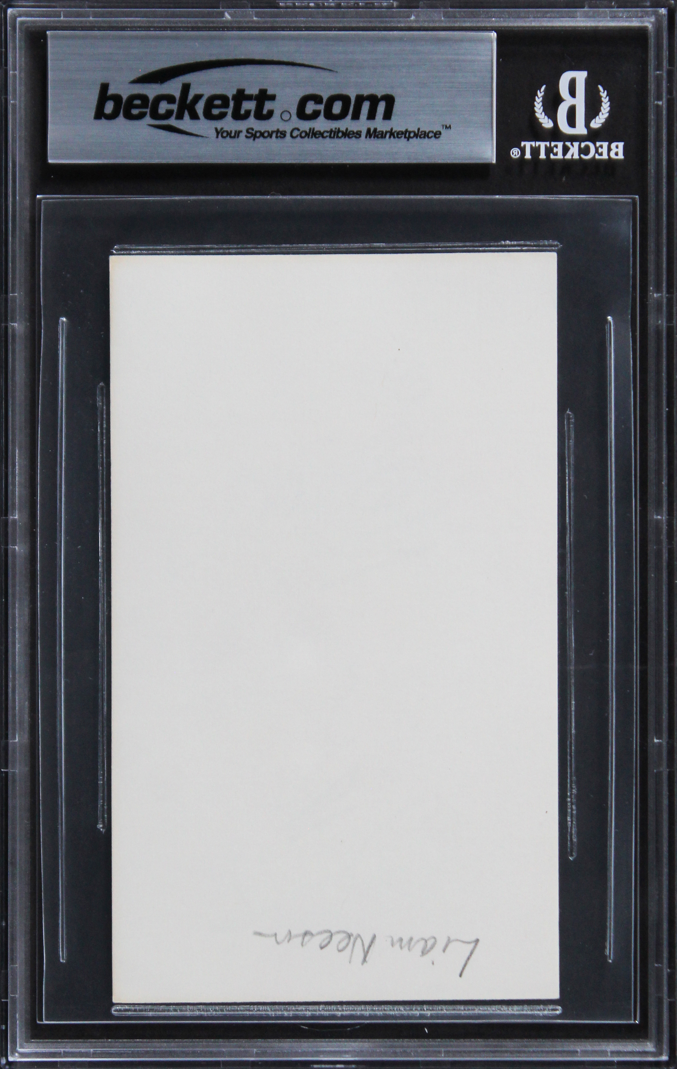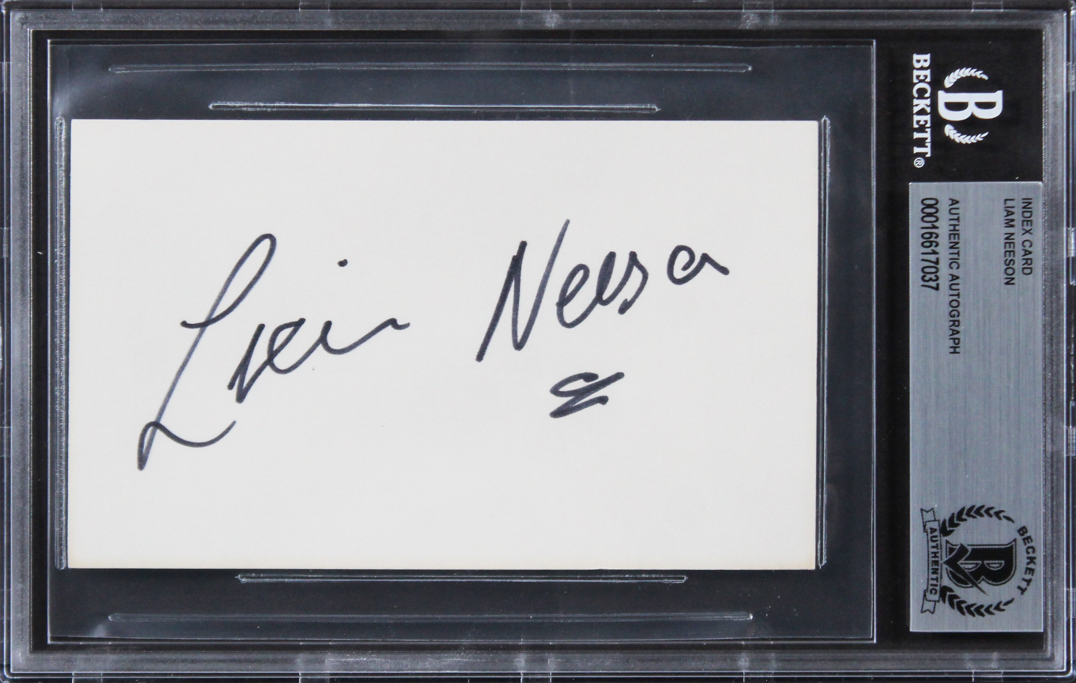 This Autographed 3x5 Index Card has been Personally Signed by Liam Neeson of Schindler's List. This item is 100% Authentic, it comes slabbed and authenticated by Beckett Authentication Services. The authenticity can be verified on Beckett Authentication Services website.