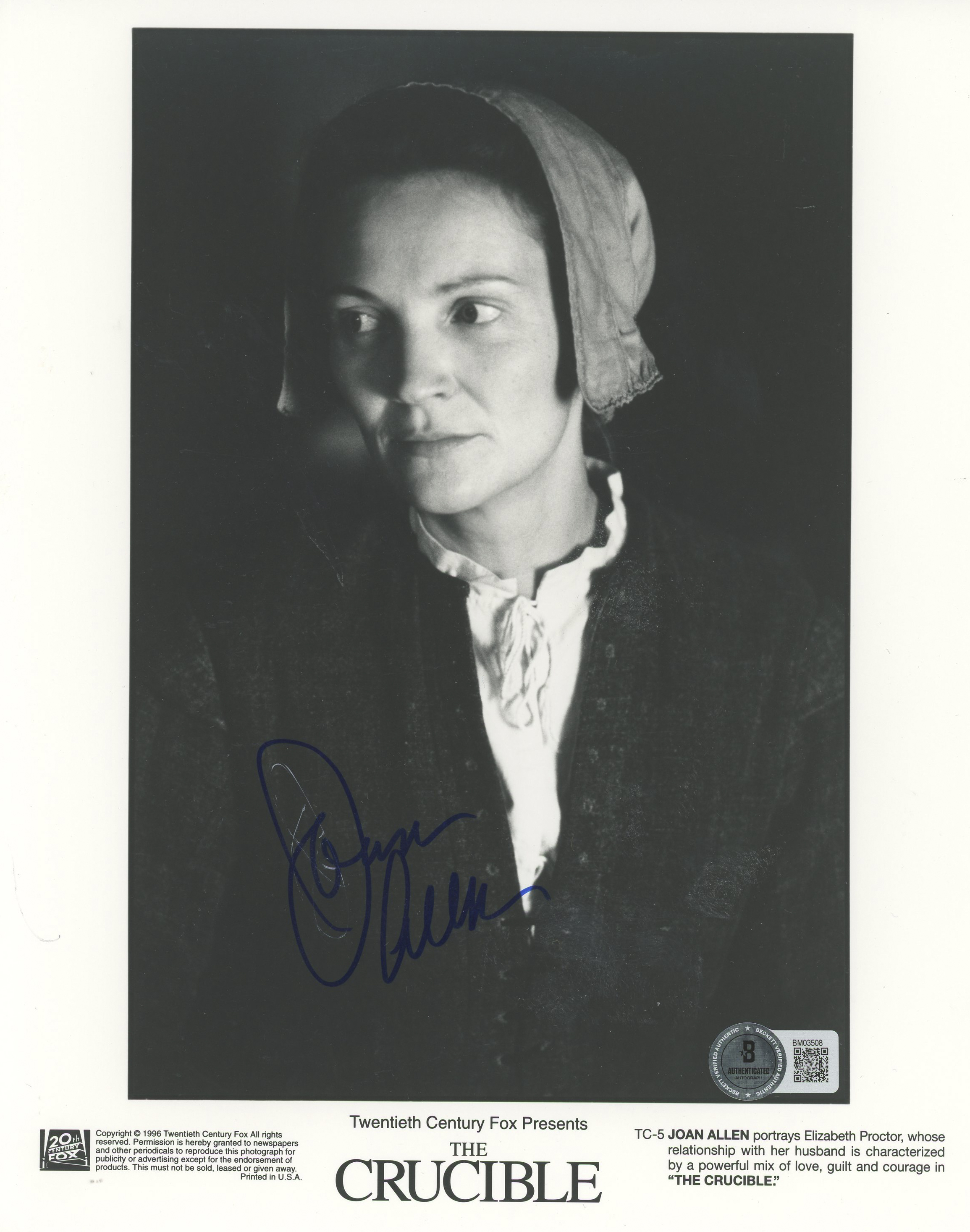 This Autographed 8x10 Photo has been Personally Signed by Joan Allen of The Crucible. This item is 100% Authentic to include a hologram by Beckett Authentication Services. This item will come with an affixed Beckett Authentication Services (BAS) authentication sticker, which includes a scannable QR code to verify authenticity. Please note that Beckett no longer provides serial-numbered COA cards, and the attached BAS sticker will serve as the complete authentication for this item. The authenticity can be verified on Beckett Authentication Services website.