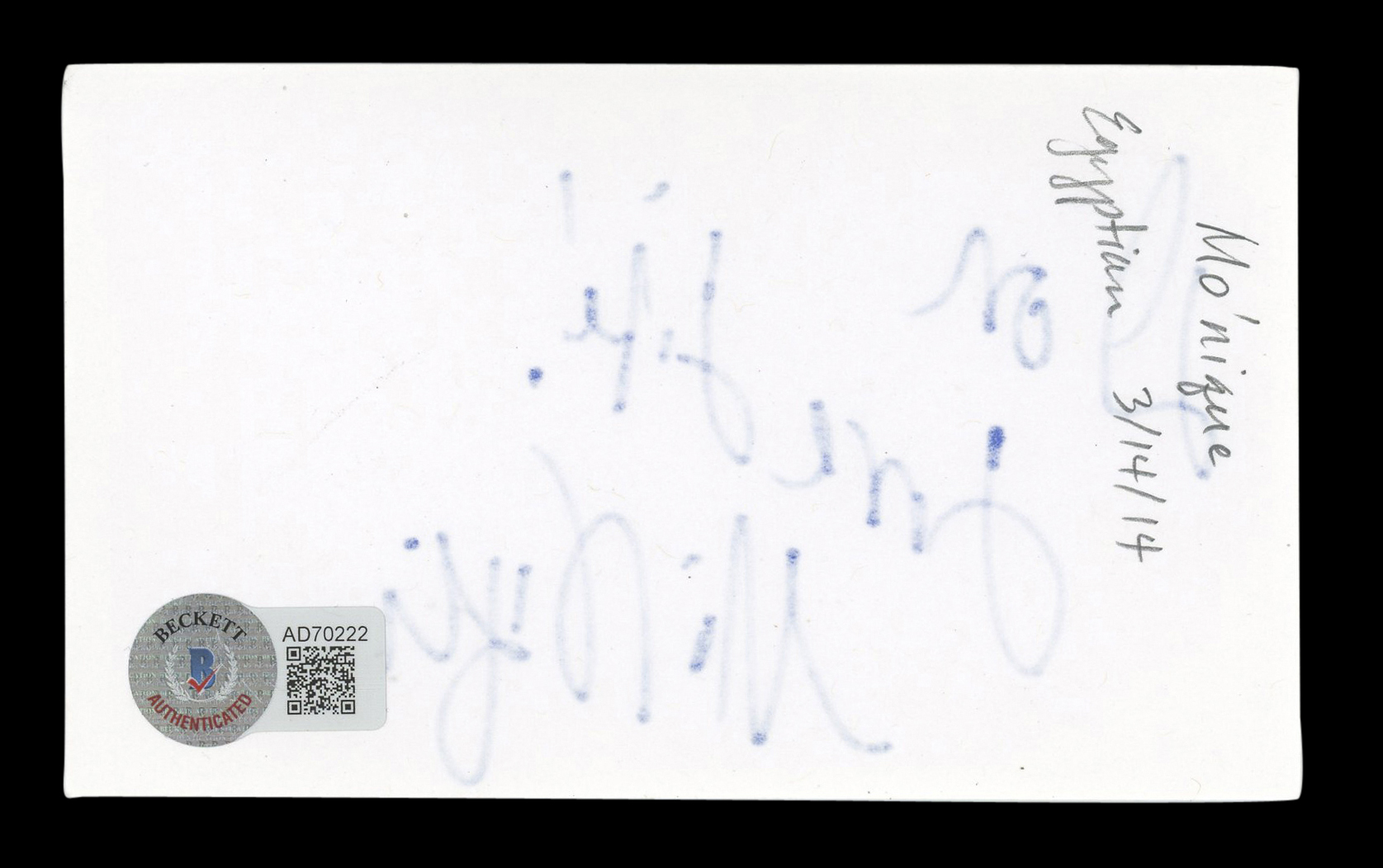 This Autographed 3x5 Index Card with the inscription of "Don, More Life!" has been Personally Signed by Mo'Nique of Precious. This item is 100% Authentic to include a hologram by Beckett Authentication Services. This item will come with an affixed Beckett Authentication Services (BAS) authentication sticker, which includes a scannable QR code to verify authenticity. Please note that Beckett no longer provides serial-numbered COA cards, and the attached BAS sticker will serve as the complete authentication for this item. The authenticity can be verified on Beckett Authentication Services website.