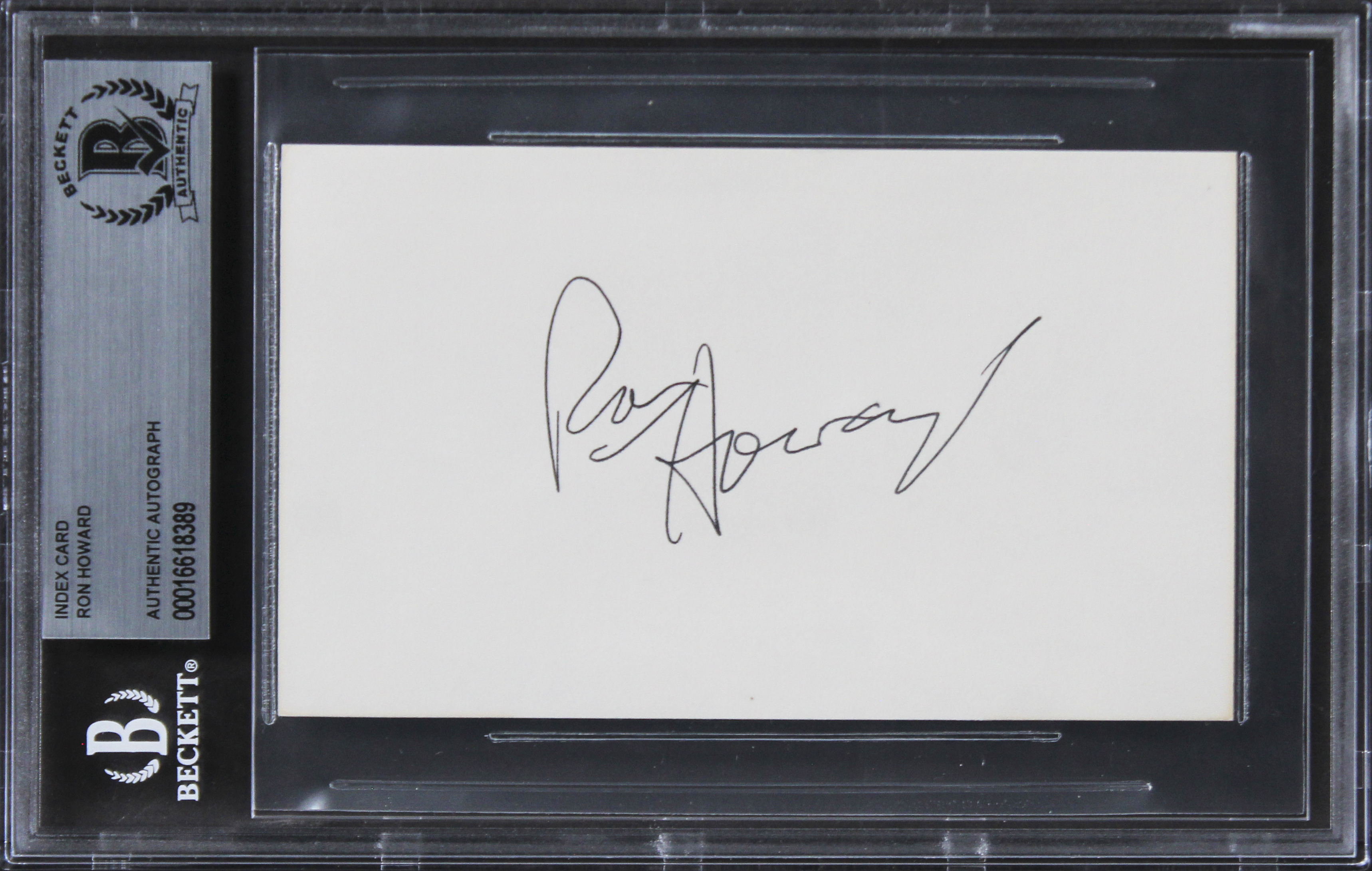 This Autographed 3x5 Index Card has been Personally Signed by Ron Howard of Happy Days. This item is 100% Authentic, it comes slabbed and authenticated by Beckett Authentication Services. The authenticity can be verified on Beckett Authentication Services website.
