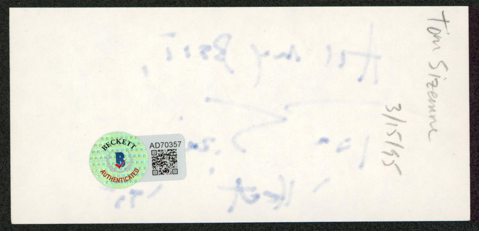 This Autographed 2.25x5 Cut Signature with the inscription of "All My Best- Heat 95" has been Personally Signed by Tom Sizemore of Saving Private Ryan. This item is 100% Authentic to include a hologram by Beckett Authentication Services. This item will come with an affixed Beckett Authentication Services (BAS) authentication sticker, which includes a scannable QR code to verify authenticity. Please note that Beckett no longer provides serial-numbered COA cards, and the attached BAS sticker will serve as the complete authentication for this item. The authenticity can be verified on Beckett Authentication Services website.