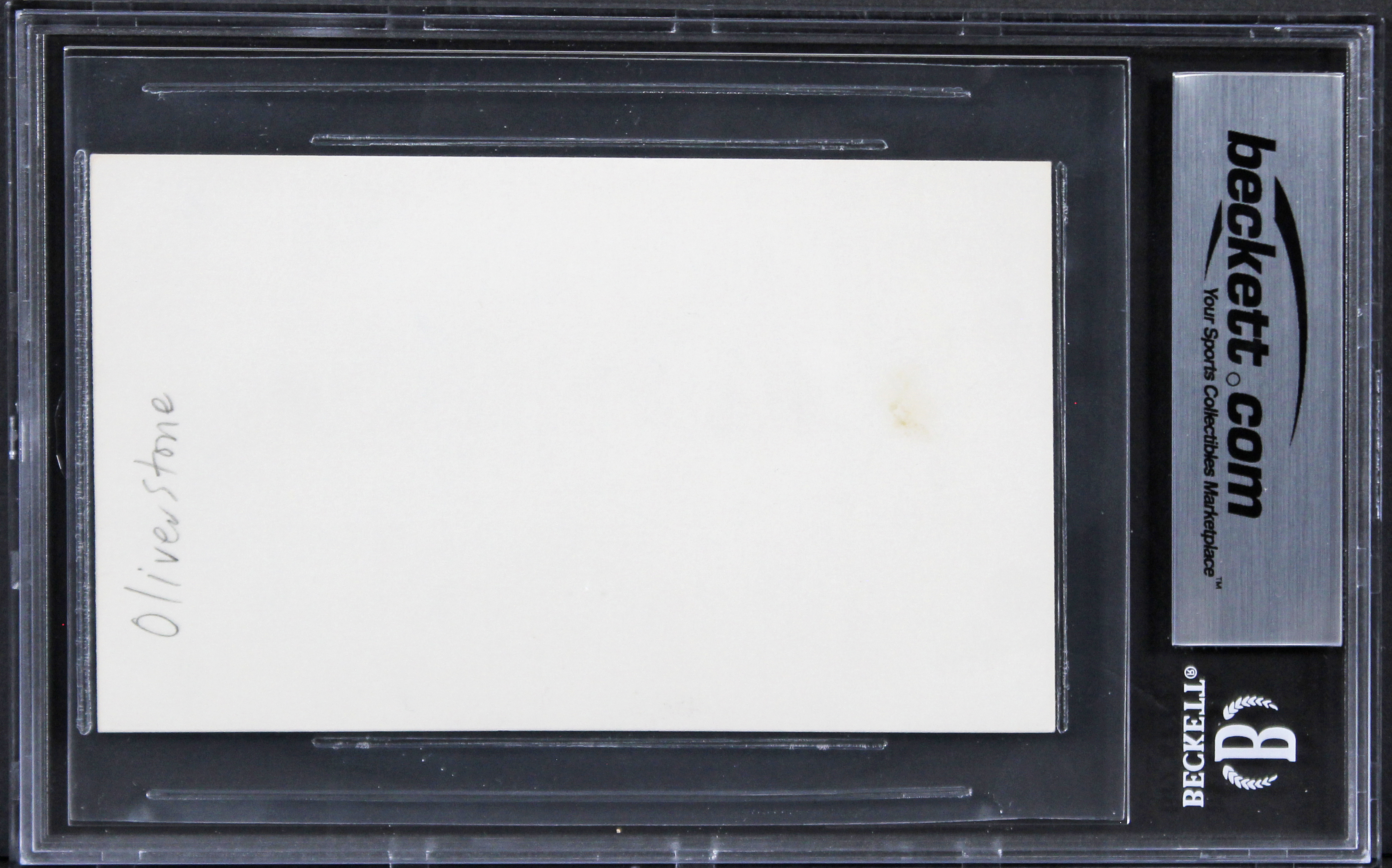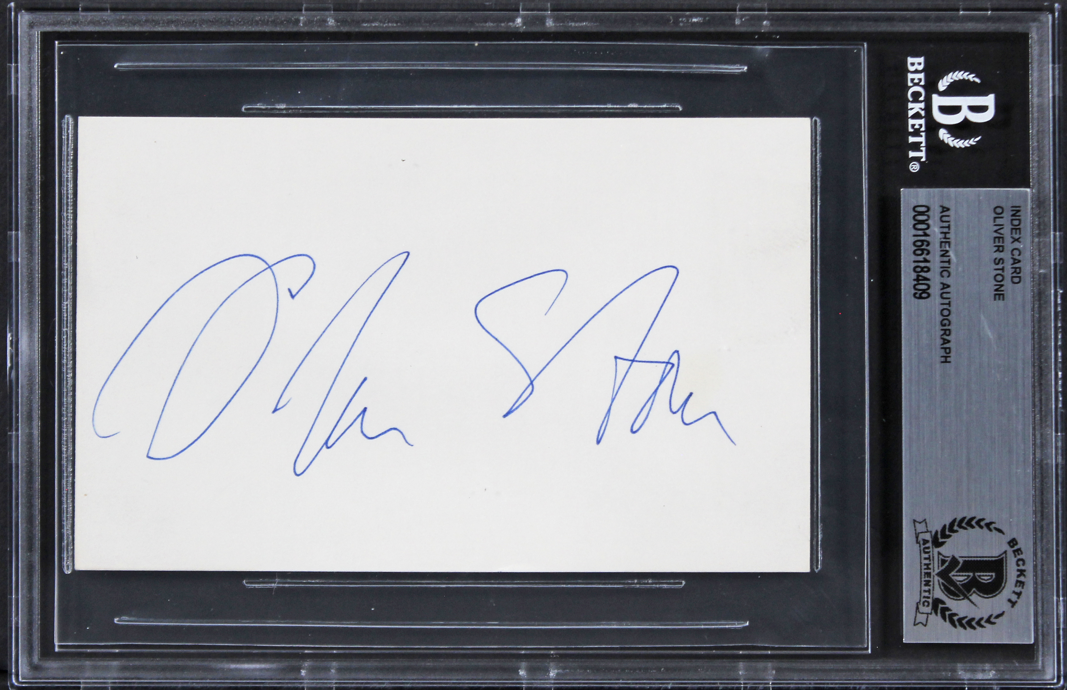 This Autographed 3x5 Index Card has been Personally Signed by Oliver Stone of Platoon. This item is 100% Authentic, it comes slabbed and authenticated by Beckett Authentication Services. The authenticity can be verified on Beckett Authentication Services website.