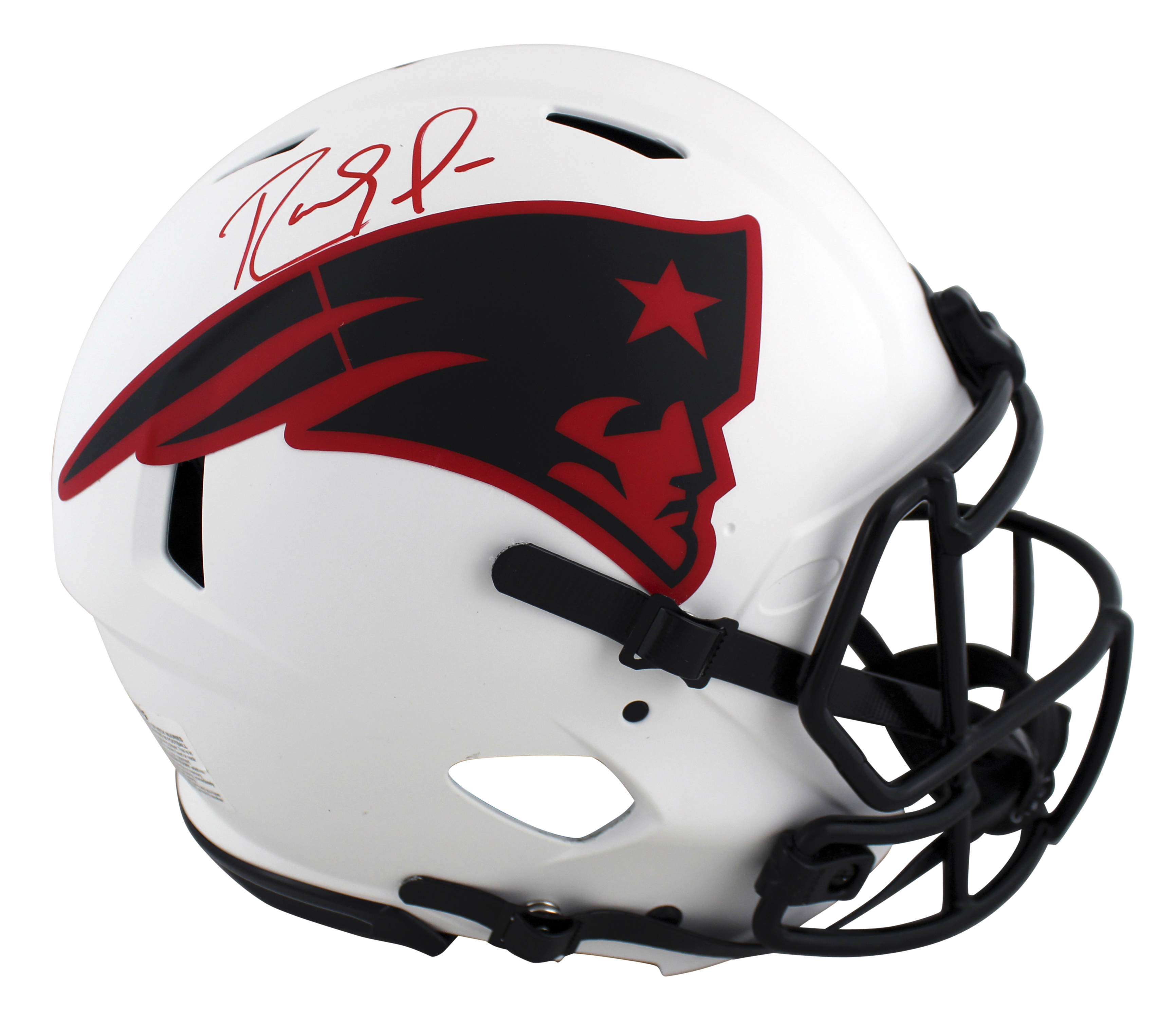 This Autographed Alternate Lunar Riddell Full Size Speed Proline Helmet W/ Uv Mirrored Back Acrylic Display Case has been Personally Signed by Randy Moss of the New England Patriots. This item is 100% Authentic to include a hologram by Beckett Authentication Services. This item will come with the new Beckett Authentication hologram that has a scannable QR code rather than the traditional COA. If you would like to have a COA, you are welcome to reach out to Beckett for a printed certification once you receive your item. This is a BAS Witnessed Protection Program item which means a Beckett Authentication Service representative was present when this item was being signed. We conducted an autograph signing with Randy Moss where multiples of the same item were signed. While the photographs are representative of this item, the size, placement and strength of the signature may vary. Each item is hand signed, therefore, each autograph is unique. This item can be verified through BAS Witnessed.