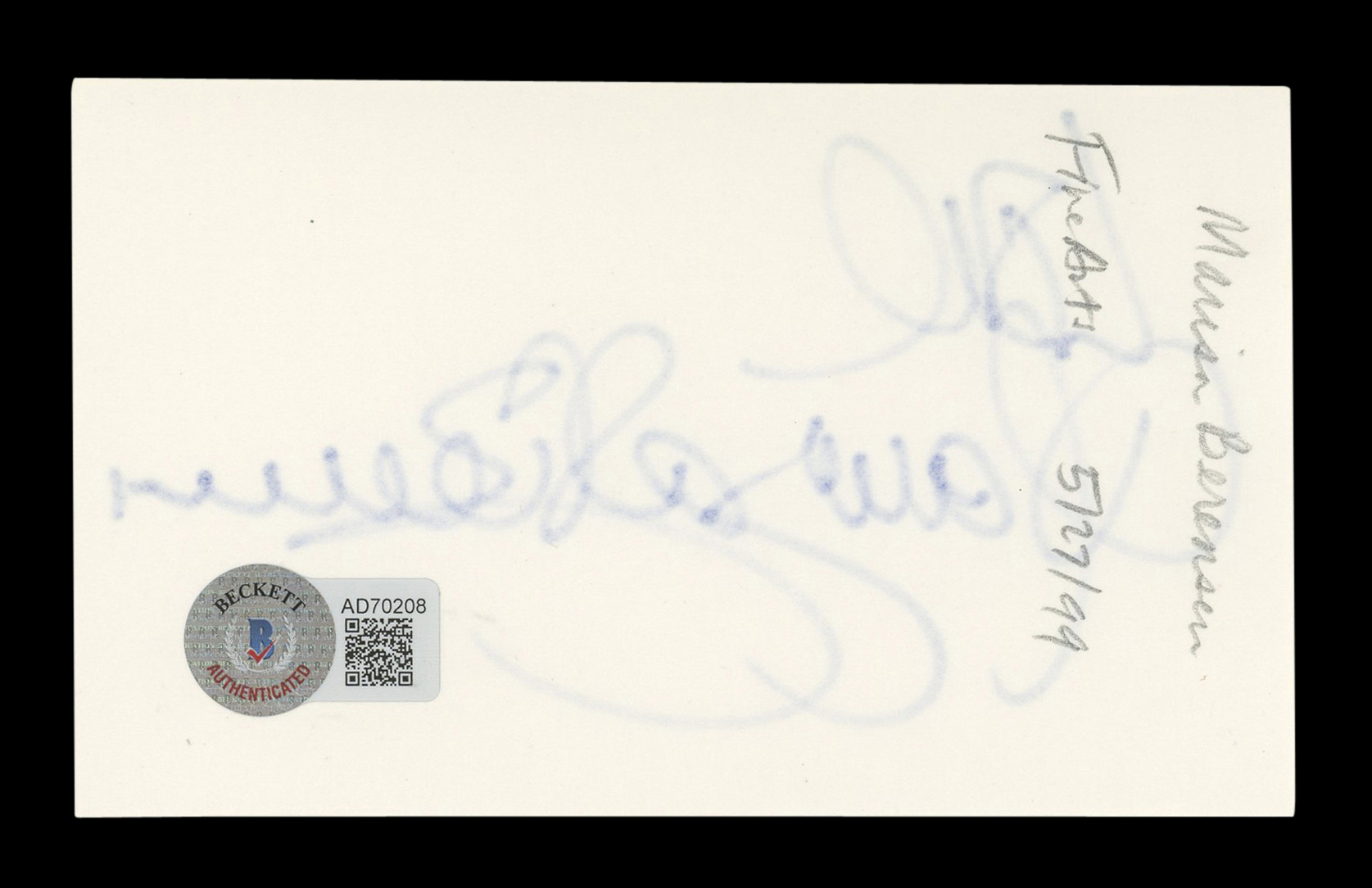 This Autographed 3x5 Index Card with the inscription of "Love" has been Personally Signed by Marisa Berenson of Cabaret. This item is 100% Authentic to include a hologram by Beckett Authentication Services. This item will come with an affixed Beckett Authentication Services (BAS) authentication sticker, which includes a scannable QR code to verify authenticity. Please note that Beckett no longer provides serial-numbered COA cards, and the attached BAS sticker will serve as the complete authentication for this item. The authenticity can be verified on Beckett Authentication Services website.