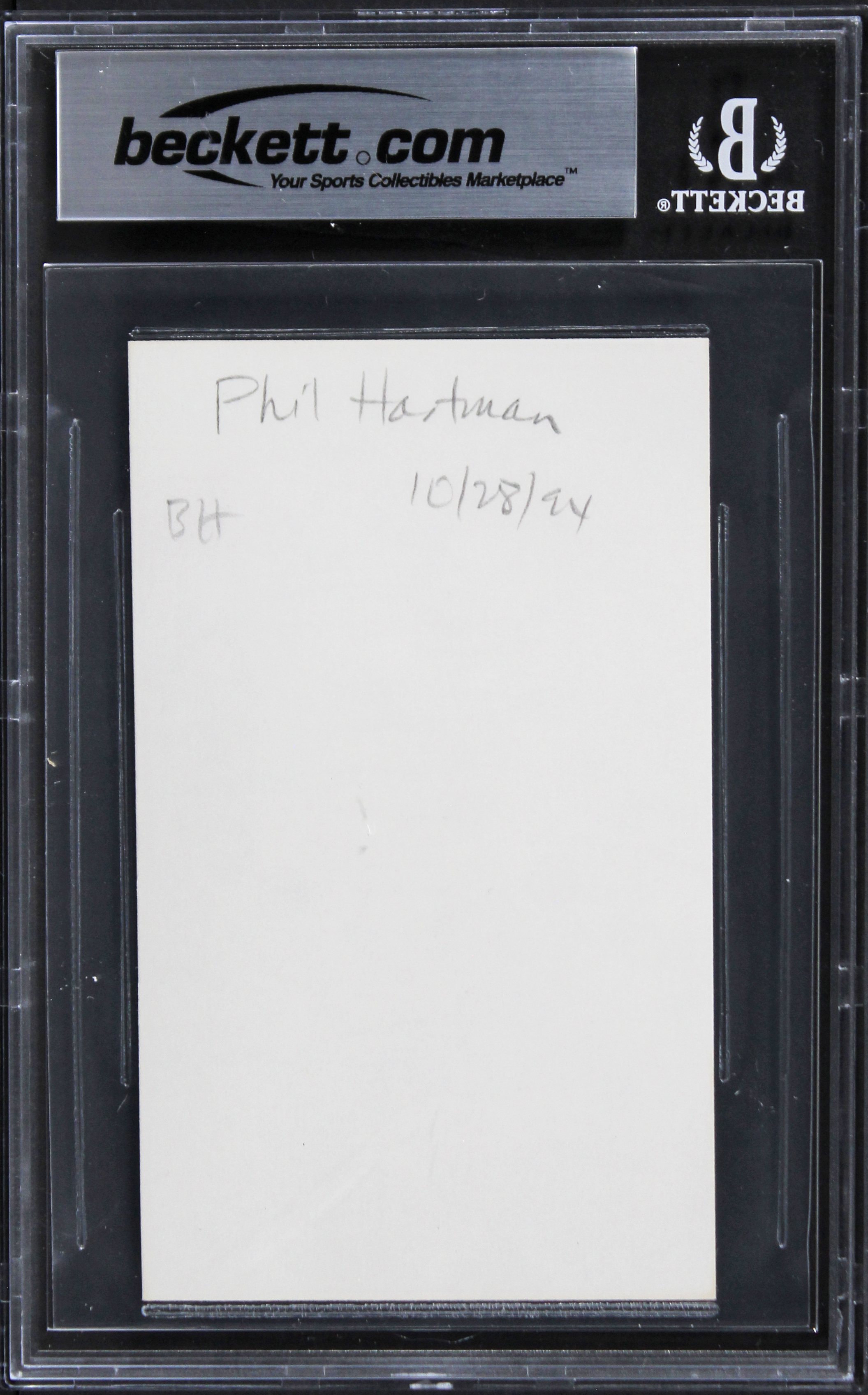 This Autographed 3x5 Index Card has been Personally Signed by Phil Hartman of Saturday Night Live. This item is 100% Authentic, it comes slabbed and authenticated by Beckett Authentication Services. The authenticity can be verified on Beckett Authentication Services website.