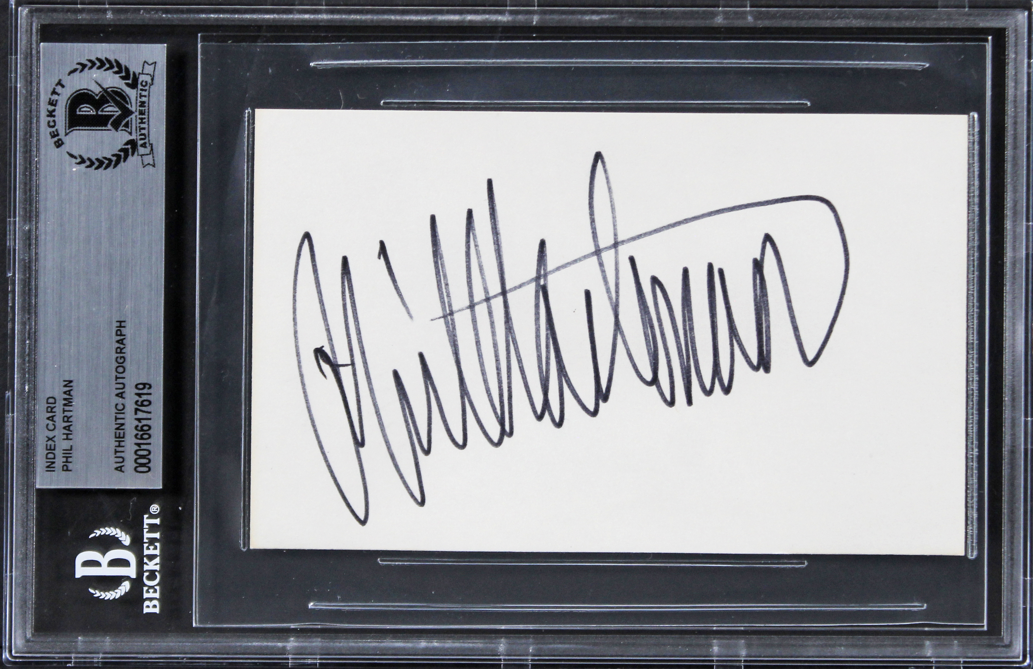 This Autographed 3x5 Index Card has been Personally Signed by Phil Hartman of Saturday Night Live. This item is 100% Authentic, it comes slabbed and authenticated by Beckett Authentication Services. The authenticity can be verified on Beckett Authentication Services website.