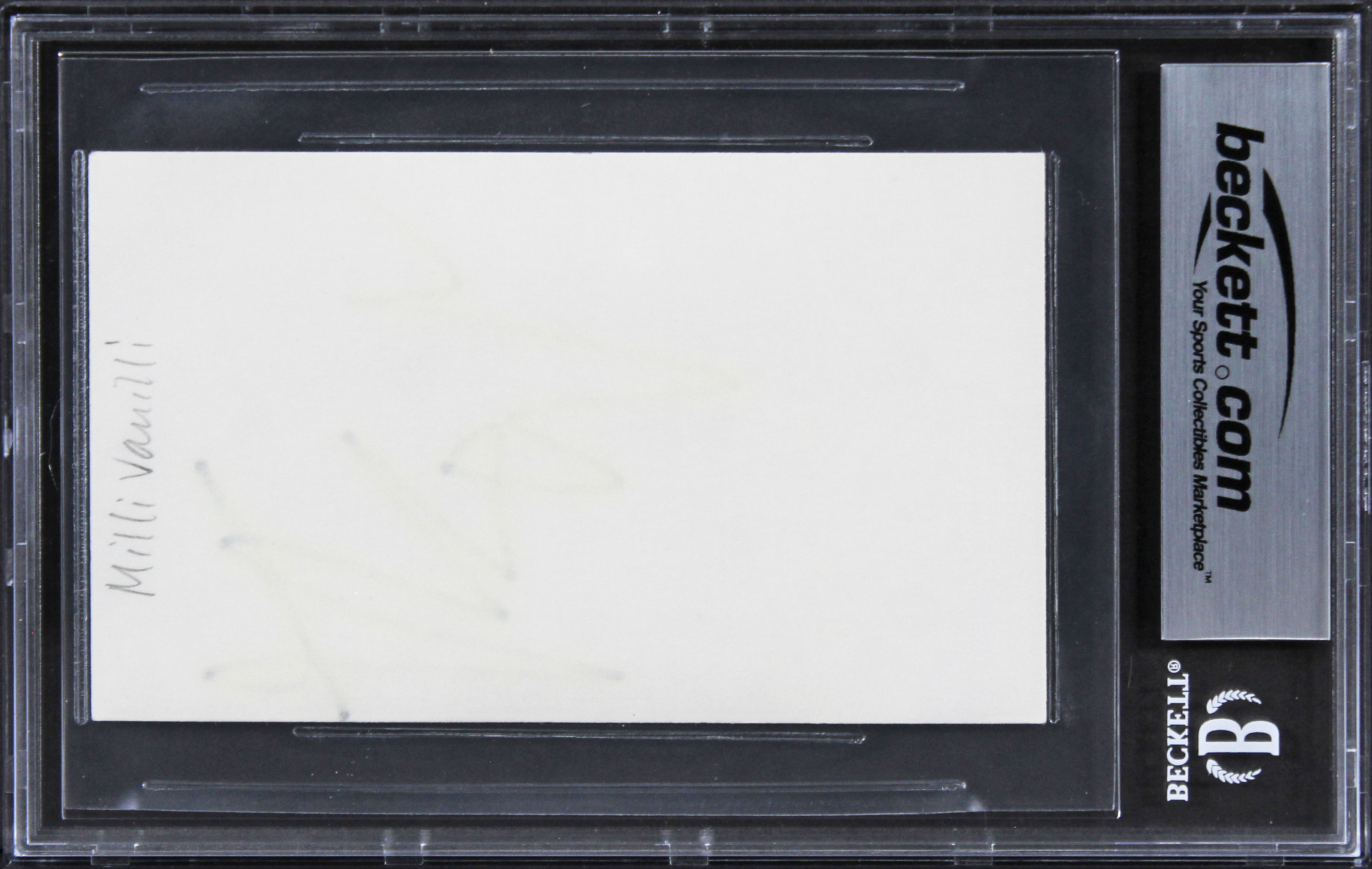This Autographed 3x5 Index Card has been Personally Signed by Rob Pilatus & Fab Morvan of Milli Vanilli. This item is 100% Authentic, it comes slabbed and authenticated by Beckett Authentication Services. The authenticity can be verified on Beckett Authentication Services website.